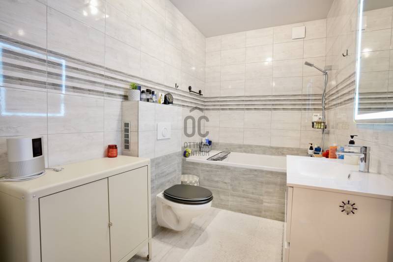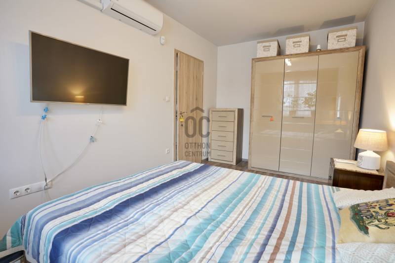 Modern, újszerű lakás Kispest kertvárosában – saját beállóval, elektromos autó töltési lehetőséggel.Budapest XIX. kerületében, Kispest kertvárosi részének csendes, rendezett utcájában, egy 2022-ben épült, mindössze 6 lakásos modern társasházban eladó egy 78,43m²-es, kiváló állapotú, lakás.Az ingatlan ideális választás családoknak vagy azoknak, akik nyugodt környezetben, mégis jó infrastruktúra mellett keresnek modern otthont.A lakás elosztása kifejezetten praktikus: tágas, világos amerikai konyhás nappali, 3 külön nyíló hálószoba, valamint 2 fürdőszoba WC-vel (egy kádas és egy zuhanyzós).A kényelmet és az alacsony fenntartási költségeket padlófűtés, minden helyiségben hűtő-fűtő klíma, valamint korszerű műszaki tartalom biztosítja.A biztonságról riasztórendszer és videós kaputelefon gondoskodik.Főbb extrák:elektromos alumínium redőnyökszúnyoghálókcsendes belső kert használatamagasföldszinti elhelyezkedéselektromos autó töltési lehetőségA lakáshoz saját udvari gépkocsibeálló tartozik, melynek megvásárlása kötelező, 3,9 M Ft értékben.További, külön megvásárolható lehetőségek: 10 m²-es tároló, önálló helyrajzi számmalbruttó 86 m²-es zárt teremgarázs, szintén külön helyrajzi számon ennek ára 39,9M.-FtEz az ingatlan ritka lehetőség a környéken: modern, újszerű, kis lakásszámú társasházban, kiváló elosztással és extra felszereltséggel.Közelében minden megtalálható, ami fontos a hétköznapokban, tömegközlekedése is kiváló.Amennyiben kérdése lenne, vagy szeretné megtekinteni személyesen is, kérem hívjon bizalommal, várom.Teljeskörű pénzügyi és jogi háttér-szolgáltatással várom kedves ügyfeleimet.