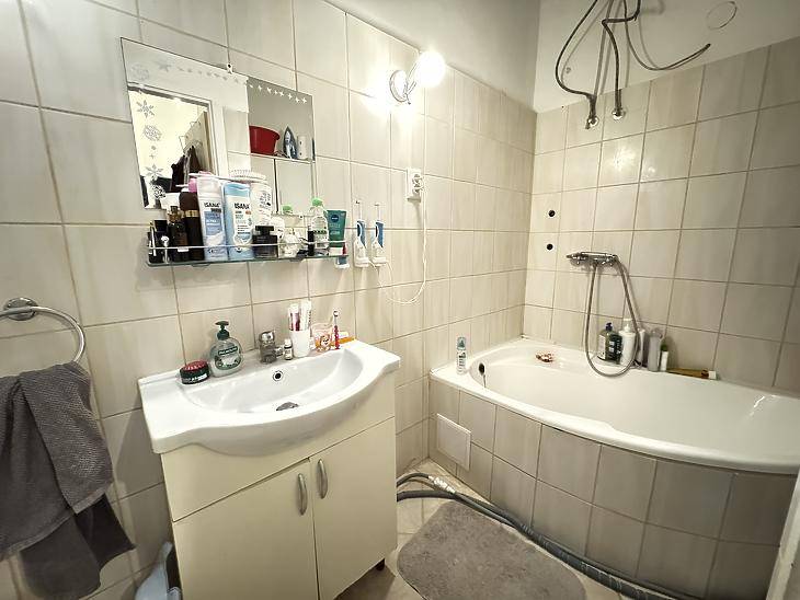 Újpesten, az Aschner Lipót tér közelében, csendes mellékutcában, 5 lakásos udvarban, eladásra kínálunk egy jó állapotú, 57 nm-es, 1+1 félszobás kialakítású téglalakást. Az ingatlan átadási ideje: 90-120 nap! Közös költsége: 26.000.- Ft/hó (vízfogyasztás benne van). A lakásban megtörtént a teljes villanyhálózat korszerűsítése. Több ponton záródó biztonsági bejárati ajtót, redőnnyel felszerelt fa, illetve műanyag keretes, thermo üveges nyílászárókat építettek be. A szobákban padlószőnyeg, a többi helyiségben járólap és fa parketta található. A fűtésről elektromos fűtőpanel, a melegvíz ellátásról villanybojler gondoskodik. Belmagasságából adódóan a hasznos alapterületet galéria kialakításával növelték. A tetőtér beépítését megkezdték, megtörtént a szigetelés és a gipszkartonozás. Lehetőség van további két 15 nm-es szoba és egy 10 nm-es közlekedő kialakítására. Az ingatlanhoz kb. 6 nm-es tárolási lehetőség is biztosított. A közelben megtalálható a 147-es, 30-as, 196-os, 220-as, 122-es, 96-os busz megállója. A belváros tömegközlekedéssel és autóval egyaránt rövid időn belül megközelíthető. A hirdetésben szereplő adatok tájékoztató jellegűek! Egyes ingatlanjaink esetében csere és ingatlanbeszámítás is lehetséges. Továbbá ügyfeleink részére keresünk eladó ingatlant, tulajdonrészt, vagy haszonélvezeti joggal terhelt ingatlant Budapesten és az agglomerációban. A részletekről kérjük érdeklődjön telefonon.Bankfüggetlen hiteltanácsadóink, az ország összes pénzintézete közül gyorsan és gördülékenyen találja meg az Önnek legmegfelelőbb konstrukciót, egyedi, személyre szabott kedvezményekkel.A KÖZVETÍTÉS VEVŐINK RÉSZÉRE DÍJMENTES!