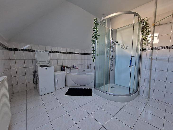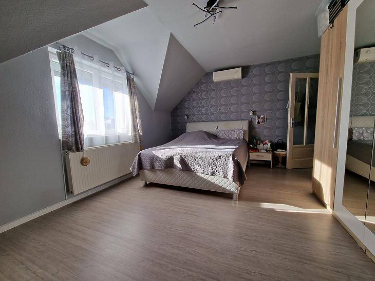 Dunakeszi Révdűlőben eladó egy jó adottságú, 2005-ben épült ikerházfél.Az ingatlan 172 nm összterületű, ebből 139 nm lakótér. A kialakítás kifejezetten jól használható: négy hálószoba, amerikai konyhás nappali, gardrób, két fürdőszoba + külön WC biztosít elegendő teret akár nagyobb családnak vagy több generációnak is.A fűtésről és meleg vízről karbantartott gázkazán gondoskodik. Az elmúlt években az ingatlan több ponton felújításon esett át:automata redőnyök, klíma, padlóburkolatok cseréje.A házhoz emeleti erkély, hátsó terasz, beépített utcafronti terasz, valamint garázs tartozik. A ház előtt viacolorral burkolt parkoló van kialakítva, amely két autó számára kényelmes megoldást nyújt.A 200 nm-es öntöző rendszerrel ellátott kert bőven ad teret a szabadban eltöltött időhöz. Az öntöző rendszert fúrt kút táplálja.Csendes, családi házas környezet, jó megközelíthetőség:buszmegálló 8 perc, Duna-part 5 perc, Orvosi rendelő, és bevásárlási lehetőség is pár perc séta távolságra megtalálható.Amennyiben az ingatlan megvásárláshoz hitelt szeretne igénybe venne, és vagy a saját ingatlanát eladni, jelezze felénk, hogy segíthessünk a gördülékeny ügyintézésben.