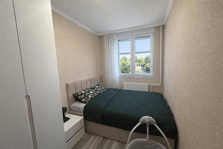 Újpesten, a XIII. kerület szomszédságában, parkos környezetben, liftes társasház IV. emeletén, eladásra kínálunk egy 55 nm-es, 1+2 félszobás elosztású, felújított, keleti fekvésű panellakást.Az ingatlan 1/1-es tulajdonban van, per-teher és igénymentes. Közös költsége: 16.000.- Ft/hó. Átadási ideje: azonnal birtokbavehető.A lakás 3 évvel ezelőtt teljeskörű felújításon esett át, melynek keretein belül megtörtént a teljes víz és villanyhálózat korszerűsítése. Több ponton záródó biztonsági bejárati ajtót, modern beltéri ajtókat és sötétítővel felszerelt műanyag keretes, thermo üveges nyílászárókat építettek be. A szobákban laminált padlót helyeztek le, a többi helyiséget járólappal burkolták. A fűtőtestek cseréje is megtörtént, új lapradiátorokat szereltek fel. A nappaliba a nagyobb komfortérzet kialakításának érdekében egy hűtő-fűtő inverteres légkondicionáló berendezést is felszerelésre került. Konyhája ablakos, világos, a konyhabútor a vételár részét képezi. A vételár továbbá tartalmazza a lakás teljes bútorzatát, gépesítéssel együtt. A közelben megtalálható az Angyalföld vasútállomás, a 20E, 25-ös, 30-as busz, valamint a 12-es, 14-es villamos megállója is. Újpest-központ és az M3-as metróállomás villamossal 2 megállóra található. A belváros tömegközlekedéssel és autóval egyaránt rövid időn belül elérhető.A hirdetésben szereplő adatok tájékoztató jellegűek! Egyes ingatlanjaink esetében csere és ingatlanbeszámítás is lehetséges. Továbbá ügyfeleink részére keresünk eladó ingatlant, tulajdonrészt, vagy haszonélvezeti joggal terhelt ingatlant Budapesten és az agglomerációban. A részletekről kérjük érdeklődjön telefonon.Bankfüggetlen hiteltanácsadóink az ország összes pénzintézete közül gyorsan és gördülékenyen találják meg az Önnek legmegfelelőbb konstrukciót, egyedi, személyre szabott kedvezményekkel.A KÖZVETÍTÉS VEVŐINK RÉSZÉRE DÍJMENTES!