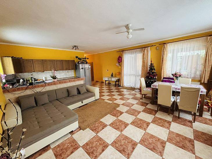Dunakeszi közkedvelt Szabadságligeti részén, egy csendes, eldugott utcában kínálunk megvételre egy kiváló adottságokkal, jó állapotokkal rendelkező családi házat. Az ingatlan nyugodt lakóövezetben helyezkedik el, távol a főút forgalmától, így a mindennapokat zavartalan pihenés és kellemes környezet jellemzi.A ház kialakítása ideális választás nagycsaládosok számára, de két generáció együttélésére is tökéletes megoldást nyújt, mivel az ingatlan funkcionálisan két, egymástól elkülönülő lakóegységből áll.Az első házrészben egy tágas amerikai konyhás nappali és 3 külön nyíló szoba, valamint egy fürdőszoba külön wc-vel, illetve egy kis spájz került kialakításra, míg az udvar hátsó részében egy különálló, ház épült, amelyben további 4 szoba, fürdőszoba, konyha található, amely akár továbbá szét választható különálló lakásokra. Mindkét lakóegység külön bejárattal rendelkezik, így az együttélés zavartalan, mégis közelséget biztosít a családtagok számára.A lakóingatlanhoz saját, fedett autóbeálló tartozik, a kert gondozását pedig fúrt kút segíti.Az épület külsőleg 10 cm-es hőszigetelést kapott, melynek köszönhetően az ingatlan alacsony rezsiköltséggel üzemeltethető.Az ingatlanban egy nagy teljesítményű hűtő-fűtő klíma került beszerelésre, fűtése radiátoros hőleadással és padlófűtéssel is ellátott.A környék barátságos, rendezett, kiválóan alkalmas családok számára, akik értékelik a csendet, ugyanakkor fontos számukra Dunakeszi jó infrastruktúrája és könnyű megközelíthetősége.Kérdésével, illetve megtekintési szándékával keresse irodánkat! Amennyiben hitelre lenne szüksége, profi hitelközvetítő kollégáink díjmentesen állnak rendelkezésére.