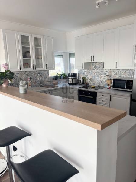 Modern, alacsony rezsijű családi ház panorámával eladó Vilonyán!Vilonya csupán 10 percre a Balatontól!- Vilonya csendes, új építésű részén eladó egy nettó 125 m²-es, egy szintes, újszerű családi ház, amely ideális választás azoknak, akik modern otthont keresnek természetközeli, nyugodt környezetben, mégis kiváló elérhetőséggel!- Az ingatlan 2022-ben épült, 1001 m²-es telken, délkeleti tájolással, gyönyörű panorámás kilátással. - A Balaton mindössze 10 km-re, Veszprém 15 km-re, az M7-es autópálya pedig kb. 20 percre található.Főbb jellemzők:- 125 m² lakótér- Amerikai konyhás nappali + 4 külön nyíló szoba- 2 fürdőszoba, WC külön és egyben is- 35 m²-es terasz- 36 m²-es, 2 állásos garázs elektromos kapuval (az árban benne van)- 150 m² térkövezett autóbeálló és járdaAzonnal költözhető!Műszaki tartalom:- Ytong falazat (25 cm) + 15 cm grafitos hőszigetelés- 30 cm födémszigetelés, 15 cm aljzatszigetelés- Minőségi nyílászárók elektromos redőnyökkel- Elektromos fűtés, kiegészítve 2 db klímával- Melegvíz-ellátás: Ariston hőszivattyús bojler- Rendkívül alacsony rezsi (kb. 20–30.000 Ft/hó)Környezet és infrastruktúra:- Gyönyörű újépítésű házak között, 10 percre a Balatontól- Aszfaltos úton megközelíthető, nyugodt, falusias környezet. - A településen belül sétatávolságra park, modern játszótér, óvoda, bolt és orvosi rendelő is elérhető.Extra információk:- Előkészített kamera- és riasztórendszer- Elektromos kapu és kerítés jelenleg kb. 60%-os készültségbenCSOK Plusz igényelhető!3%-os támogatott, Otthon Start Program hitelre jogosult!