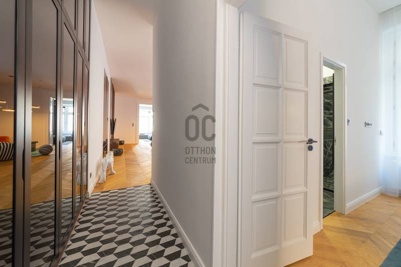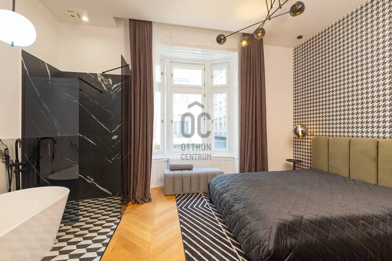 Az INT Interior Design Awards egy rangos, nemzetközi szintű szakmai elismerés, amely a kiemelkedő belsőépítészeti formatervezést, a térkompozíciók harmóniáját és az innovatív megoldásokat díjazza világszerte.A világhírű belsőépítészek díjazott munkái közé, egy magyar belsőépítész is keze munkája is bekerült az alábbi otthonnal.A lakás enteriőrje a modern luxust, a kozmopolita életérzést és az időtálló eleganciát ötvözi.AZ ÉPÜLETRŐLA lakás egy klasszikus, korabeli társasházban található, amely a 20. század közepén épült és ma is őrzi a belvárosi bérházakra jellemző karaktert. Az épület jellegzetes, nagypolgári arányokkal és méretarányokkal bír, így belső tereiben és külső megjelenésében egyaránt érezhető a történeti háttér és a városi elegancia.FŐBB JELLEMZŐK:- 93 m² alapterület, közel 50 m²-es nappali–konyha–étkező térrel- 2 külön nyíló hálószoba és 2 fürdőszoba- Több mint 3 méteres belmagasság- Kandalló, a nappali látványos központi eleme- Teljesen berendezett, azonnal költözhető / kiadható állapot- Belsőépítész által tervezett, egyedi design megoldások- Prémium burkolatok: chevron tölgyparketta, márványhatású nagylapok, exkluzív kerámiák- Egyedi, füstüveg frontos beépített szekrények az előszobában és hálószobákban- Díjnyertes bútorzat és gondosan válogatott designkiegészítők- Saroklakás, déli és keleti tájolással, kiváló természetes fényviszonyokkalA prémium minőségű, egyedi tervezésű bútorzat, designlámpák, burkolatok és kiegészítők összértéke megközelítőleg 24 millió forint, amely a vételár részét képezi. A berendezésben olyan ikonikus darabok is megtalálhatók, mint a Gaetano Pesce által tervezett Up 50 fotel, valamint neves gyártók termékei.A bútorzat és a teljes berendezés összértéke 24 MFT, ami a vételáron felül értendő és KÖTELEZŐEN MEGVÁSÁROLANDÓ.LOKÁCIÓ ÉS KÖZLEKEDÉSBudapest belvárosának szívében, az V. kerületben, díjnyertes belsőépítészeti koncepció alapján kialakított lakás. A környék a belvárosi életstílus minden előnyét kínálja:- prémium éttermek, kávézók, üzletek- kulturális intézmények, galériák- Duna-part, Váci utca és Deák tér néhány perc sétával elérhetőKözlekedés:- Ferenciek tere és Deák Ferenc tér 5–8 perc sétára- M1, M2, M3 metróvonalak gyors elérhetőséggel- Számos busz- és villamosjárat a közelben- Kiváló autós és kerékpáros megközelítésA lokáció ideális mind saját célra, mind befektetésként, rövid- vagy hosszútávú bérbeadásra.MŰSZAKI FELSZERELTSÉG- Teljes körű műszaki felújítás – minden gépészeti és elektromos rendszer, vezeték és csőhálózat új- Műszakilag is teljes mértékig felújított állapot, - Teljesen gépesített, egyedi tervezésű konyha prémium készülékekkel- Bordázott bútorfront, kompaktlemez munkapult, fekete kiegészítők- Magas minőségű klímaberendezés- Beépített riasztórendszer- Több ponton záródó biztonsági bejárati ajtó- Modern elektromos és gépészeti hálózat- Dupla mosdós, lebegő fürdőszobabútor- Füstüveg fallal határolt, nyitott fürdőtér a fő hálószobában- Egyedi világítási koncepció, hangulat- és funkcionális fényekkelA lakás minden részletében az ergonómia, a funkcionalitás és az esztétikum egysége érvényesül. A bútorok, beépített elemek és válaszfalak már a tervezési fázisban a maximális helykihasználás és komfort érdekében kerültek kialakításra.Felmerülő kérdéssel vagy megtekintéssel kapcsolatban, kérem egyeztessünk!Vevő ügyfeleink számára díjmentes, bankfüggetlen hiteltanácsadással biztosítjuk, hogy a számukra legkedvezőbb finanszírozási döntéseket hozhassák meg. Emellett opcionálisan igénybe vehető kiegészítő szolgáltatásaink – például ügyvédi közreműködés, energetikai tanúsítvány vagy villamos biztonsági felülvizsgálat – teljes körű szakmai támogatást nyújtanak az adásvétel minden egyes lépésénél.