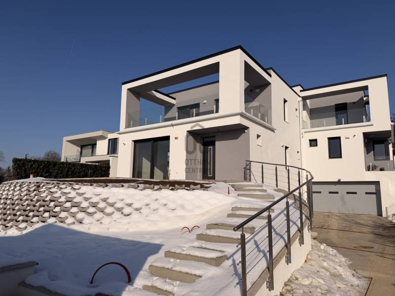 Ez az otthon azoknak szól, akik a csendes, nyugodt környezetet keresik, ami mellé kifogástalan panoráma társul.INGATLANRÓL:Földszint:Jól használható előtér és vendégmosdóNappali–konyha–étkező nagy üvegfelületekkel és dél-nyugati tájolással.Földszintes egy tágas masterbedroom kádas fürdőszobával Kertkapcsolatos teraszA konyhából közvetlen kijárat az árnyékos teraszraEmelet:Két normál méretű hálószobaKülön fürdőszoba 30 nm-es panorámás tetőteraszról, akár a Parlamentig ellátni.Garázsszint / Gépészet:Kétállásos garázs, automata kapuval.Háztartási helyiség, ahol a gépészet is helyet kapott.MŰSZAKI TARTALOM A lakások az ENERGIATAKARÉKOSSÁG jegyében készültek!- H tarifás villanyóra- Kialakított, felszerelt napelem - Padló fűtés és mennyezet hűtés-fűtés! SAJÁT Mitsubishi hőszivattyú - Kamerarendszer, videó kaputelefon - Három rétegű prémium nyílászárók, redőnnyel és szúnyoghálóval- Elektromos autótöltő csatlakozásLOKÁCIÓ ÉS KÖZLEKEDÉS- 218-as buszmegálló pár lépésre található, közvetlen kapcsolatot biztosít Óbudával (Szentlélek tér).- Az Aranyvölgy vasútállomás 5 perc sétára elérhető, ahonnan a Nyugati pályaudvar 15 perc alatt megközelíthető.- Autóval az Árpád híd 15 perc alatt elérhető, a Bécsi úti bevásárlóközpontok (Tesco, Aldi, Praktiker, Decathlon) pedig mindössze néhány percre találhatók.A környék infrastruktúrája fejlett: iskola, óvoda, gyógyszertár, kisboltok és sportlehetőségek is könnyen elérhetők. A Csillaghegyi strandfürdő és uszoda autóval néhány perc, akárcsak a közeli túraútvonalak és kilátópontok.A környék kifejezetten alkalmas családok számára és mindazoknak, akik a városból kiszakadva pihenésre, feltöltődésre vágynak.Amennyiben Ön is a nyugalmat keresi közel a városhoz, és szeretné biztosítani szerettei számára a zöld, friss levegős, madárcsicsergős környezetet, úgy várom a megtisztelő hívását!