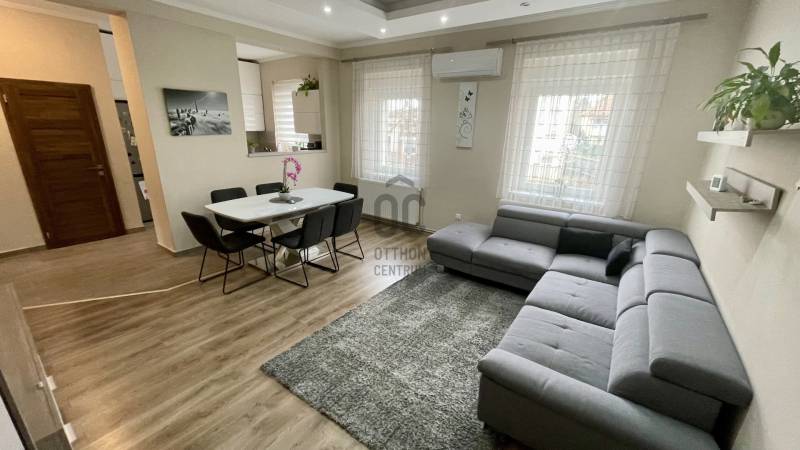 Eladóvá vált egy 150 négyzetméteres, teljeskörűen felújított családi ház Szombathely egyik legkedveltebb részén, a Csónakázó-tó közelében. A modern stílusú ingatlan ízléses burkolatokkal, beltéri ajtókkal, konyhabútorral beépített.A tágas nappali-étkező egy légtérben található a konyhával.Az ingatlan földszintjén és a tetőtérben, 4 különböző méretű hálószoba és 2 modern fürdőszoba található, így ideális nagyobb családok számára is. A műanyag nyílászárók és a napelemek gondoskodnak a hatékony energiafelhasználásról, míg az öt klíma berendezés biztosítja a kellemes hőmérsékletet minden évszakban.Az otthon melegéről gázközponti rendszer gondoskodik, ami kényelmes és hatékony megoldást nyújt.Az épület szigetelt és pince is tartozik hozzá, így tárolásra is kiválóan alkalmas.A házhoz tartozik egy fedett autóbeálló, két gépjármű számára, valamint egy udvarra néző terasz, ahol kellemesen pihenhetünk.A családi ház egy 415 négyzetméteres telken helyezkedik el, amely egy kellemes méretű kerttel rendelkezik. A Csónakázó-tó közelsége pedig még tovább növeli az ingatlan vonzerejét, hiszen a természet közelsége és a nyugalom garantált.Ne hagyja ki ezt a remek lehetőséget, hívjon még ma!Hitelre van szüksége? Az Otthon Centrum az ország egyik legnagyobb és legmegbízhatóbb hitelközvetítőjeként, teljes körű és díjmentes hitelügyintézéssel, biztosításkötéssel áll rendelkezésére!Kérje személyre szabott ajánlatunkat kollégáinktól!