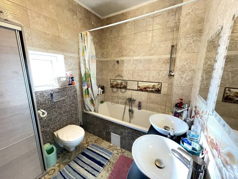 Eladó családi ház Pétfürdőn, csendes, nyugodt utcában!Kiváló elhelyezkedésű, kellemes méretű sík telek, ahol akár medence is könnyedén elfér, grillezésre, pihenésre tökéletesen alkalmas.Főbb jellemzők:-Teljes elektromos hálózat felújítva, új rézcsövek kerültek a fűtésrendszerbe, valamint megtörtént a teljes vízvezeték-csere is-Az elmúlt 4 év során az összes burkolat cserére került-Műanyag nyílászárók szúnyoghálóval-Az épület falazata tégla és kő kombinációja-A ház 5 cm-es külső hőszigetelést kapott-Új, „okos” gázkazán került beépítésre, emellett egy „okos” villanybojler is rendelkezésre áll-Alternatív fűtésként egy vegyestüzelésű kazán puffertartállyal biztosítja a meleget, radiátoros hőleadással-A tető pala fedésű, a gerendák jó állapotban vannak, üveggyapot hőszigetelés került a padlástérbe, amely igény szerint beépíthető-Tágas, világos terek jellemzik az ingatlant-Nagyméretű, fedett terasz, amely tökéletes lehet családi ebédek, baráti összejövetelek helyszínéül-A pincében a vegyestüzelésű kazán mellett tárolási lehetőség és kis műhely is kialakíthatóAmennyiben felkeltette érdeklődését, hívjon!Bankfüggetlen hitelben-és teljes körű ügyintézésben segítünk!