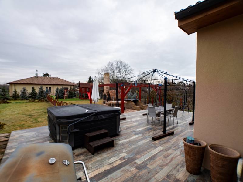 KECSKEMÉT-MÁRIAHEGY városrészében,A NYÍRI ÚTON egy igazán KÜLÖNLEGES ingatlant kínálunk eladásra, amely TÖKÉLETES választás CSALÁDOSOK számára, akik egy TÁGAS, kényelmes otthonra vágynak. Ez a használt ház 230 négyzetméteres alapterülettel rendelkezik, és egy 1942 négyzetméteres telken helyezkedik el, így bőven van hely a gyerekeknek a szabadban való játékhoz, vagy akár egy szép kertrész kialakításához. A házban négy szoba található, így minden családtagnak jut saját tér, legyen szó dolgozószobáról, vendégszobáról vagy gyerekszobáról. Két fürdőszoba teszi kényelmessé a mindennapokat, különösen a reggeli rohanás során, amikor mindenki egyszerre készülődik. A 65 négyzetméteres TERASZ ideális helyszín a családi összejövetelekhez, a baráti grillezésekhez, vagy csak egyszerűen a pihenéshez, miközben a gyönyörű panorámát élvezed. Az ingatlan KIVÁLÓ állapotban van, modern, MINIMALISTA kialakítással, amely lehetővé teszi, hogy könnyedén a saját ízlésedre formáld. Az ELEKTROMOS infra fűtés biztosítja a kellemes hőmérsékletet télen és a minimalista KANDALLÓ csodás látványt és meleget biztosít. A GARÁZSBAN két autó kényelmesen elfér, így a parkolás NEM jelent problémát. Máriahegy csendes, CSALÁDBARÁT környéke nemcsak a nyugalmat, hanem a biztonságot is garantálja, így ideális választás a gyerekek neveléséhez. A közlekedési lehetőségek is kiválóak: a város központja gyorsan elérhető autóval. Ez az ingatlan nem csupán egy ház, hanem egy otthon, ahol a család minden tagja megtalálhatja a számításait.Jellemzők:- nettó 227 m2-es lakótér- nappali + 3 hálószoba+ 2 fürdőszoba+ 1 gardróbszoba-tároló helyiség akár dolgozó szobának- három oldalú üvegezésű kandalló- 68 m2-es terasz- kerti kemence- kerti szaletli- 38 cm-es Ytong téglafalazat- külső homlokzati falon 15 cm vastag Multipor hőszigetelő rendszer- ablakok külső könyöklői műkőből készültek- TEKA kvarchomok mosogató tálca gyümölcsmosóval és egy medencével- TEKA forgatható flexibilis kifolyócsöves csaptelep- Wellis intelligens termosztátos zuhanyoszlop- Wellis fürdőkád- előkertben automata Toro öntöző rendszer telepítve kb.1500 m2- kültéri Wellis Everest típusú jakuzzi- elektromos padlófűtés- napozó terasz- szobák a gardróbszoba a közlekedő tölgy parkettával burkolva- egyedi készítésű tölgyfa külső- belső nyílászárók- 3x32 Amper- 32 m2-es borospince- parkosított kert öntözőrendszerrel- magaságyás (konyhakertnek akár)- kerti játszótér gumiszőnyeggel.Ne habozz, ha kérdéseid lennének az ingatlannal vagy a vásárlási folyamattal kapcsolatban, bátran kereshetsz! Az ingatlanpiac folyamatosan változik, és ez a lehetőség nem maradhat sokáig nyitva. Érdemes gyorsan lépni, hogy ne maradj le erről a különleges ajánlatról!