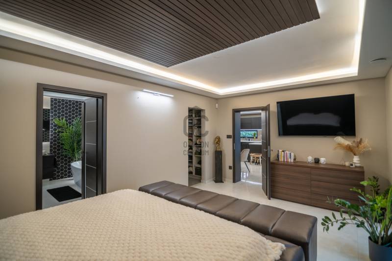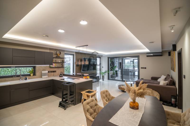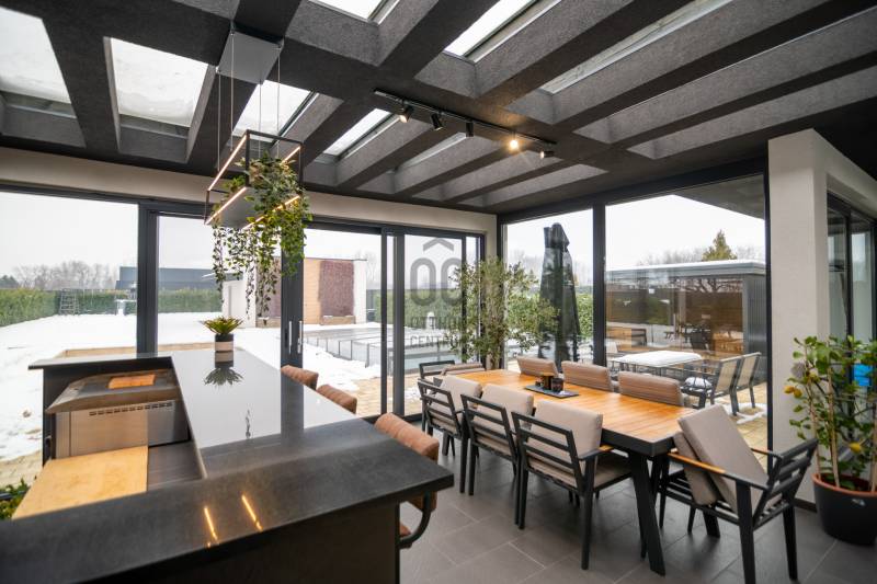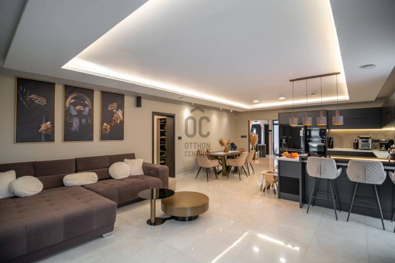 Exkluzív luxus családi rezidencia eladó Dabasi - Hernádon – kompromisszumok nélküli életstílusHernád egyik legnyugodtabb, presztízsértékű részén kínáljuk megvételre ezt a kivételes adottságokkal rendelkező, prémium felszereltségű luxus családi házat, amely minden részletében a minőséget, a kényelmet és a modern technológiát képviseli.Az 363 m² alapterületű, kifogástalan állapotú ingatlan egy 1500 m²-es, gondosan kialakított telken helyezkedik el, és ideális választás mind exkluzív otthont kereső családok, mind értékálló befektetést keresők számára.A rezidencia négy tágas szobával, nappalival amerikai konyhával és 3 elegáns fürdőszobával rendelkezik, ahol a terek arányai és a funkcionális elrendezés a magas életszínvonalat szolgálják.Privát teraszélmények72 m²-es földszinti, fedett, zárt télikert – egész évben használható, reprezentatív élettér80 m²-es emeleti terasz, teljes felületén prémium műfű borítással, zavartalan pihenésre és kikapcsolódásra tervezveParkolás & tárolás – diszkréten megoldva2 gépkocsi számára kialakított fedett beálló, exkluzív méhsejtes LED világítássalA beálló mellett praktikus, esztétikus kerti tárolóBiztonság & intelligens otthonrendszerA ház teljes körű, professzionális védelemmel ellátott:HikVision kamerarendszer (5 kamera, ebből 1 kihangosítható)HikVision kaputelefon24 órás távfelügyeletre kötött biztonsági rendszerParadox hőérzékelőkMozgás- és nyitásérzékelők minden helyiségben és nyílászárónUjjlenyomatos és kódos prémium Marshall bejárati ajtóBelső terek – technológia és eleganciaDesign konyha rejtett szagelszívóval és LED megvilágítással, nyitásérzékelő Elektromos redőnyökAutomata víztisztító rendszerKülön kialakított edzőtér klímával, szellőztető rendszerrel, TV-vel és hangrendszerrelWellness & életstílusFűtött, tengervizes úszómedence, ellenáramoltatóvalMedencéhez tartozó külső zuhanyzóSüllyesztett sütögető – grillezési és bográcsozási lehetőséggelKültéri finn szauna (210x400)A kert végében elhelyezkedő, 40 m²-es, teljesen felszerelt, önálló edzőterem – privát fitness élmény kompromisszumok nélkülKert – fenntartható luxusFúrt kútról működő automata öntözőrendszerHusqvarna Automower 415X robotfűnyíróHangulatos, gondosan megtervezett kerti díszvilágításZárt terasz – a rezidencia ékköveKandalló és pizzasütőTeljes értékű, prémium kültéri konyha szigettel, sütővel és vaslappalHáromrétegű, hőszigetelt üvegtető2×2 szárnyú, elhúzható nyílászárók szúnyoghálóval→ tökéletes helyszín exkluzív vacsorákhoz, baráti összejövetelekhez, minden évszakbanJövőbiztos megoldásokHuawei 3 fázisú, 22 kW-os elektromos autó töltőFűtés, hűtésLevegő-víz hőszivattyúPadlófűtésKlíma hűtésBelső levegő keringetés300 literes, meleg víz bojlerEz az ingatlan nem csupán egy ház, hanem egy tudatosan megtervezett, magas műszaki és esztétikai színvonalú életstílus-rezidencia, ahol a luxus természetes módon válik a mindennapok részévé.Letisztult vonalak, intelligens megoldások és privát luxus – mindez egy harmonikus egésszé formálva. Ez az otthon nem követi a trendeket, hanem szintet képvisel.Az ilyen lehetőségek ritkán kerülnek piacra.Megtekintés kizárólag előzetes egyeztetés alapján.