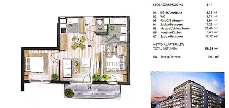 Eladásra kínálunk egy 2020-ban átadott, modern Cordia társasház 6. emeletén található, 58 m² alapterületű + 9 m²-es erkélyes, dél–nyugati fekvésű lakást.Az ingatlan praktikus elrendezésű:-nappali + 2 külön nyíló szoba-külön helyiségben található fürdőszoba és WC-világos, napfényes terek a kedvező tájolásnak köszönhetően-9 m²-es, jól használható erkélyA közös költség 55 000 Ft, amely a villany kivételével minden egyéb költséget tartalmaz.A lakáshoz garázs és tároló nem tartozik, azonban a társasházban bérlési lehetőség rendelkezésre áll.Kiváló elhelyezkedésének köszönhetően tökéletes választás saját otthonnak vagy befektetésnek egyaránt, a belváros közelségével és minden fontos szolgáltatás könnyű elérésével.