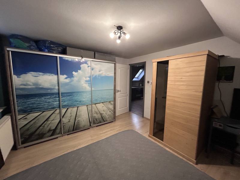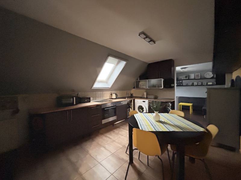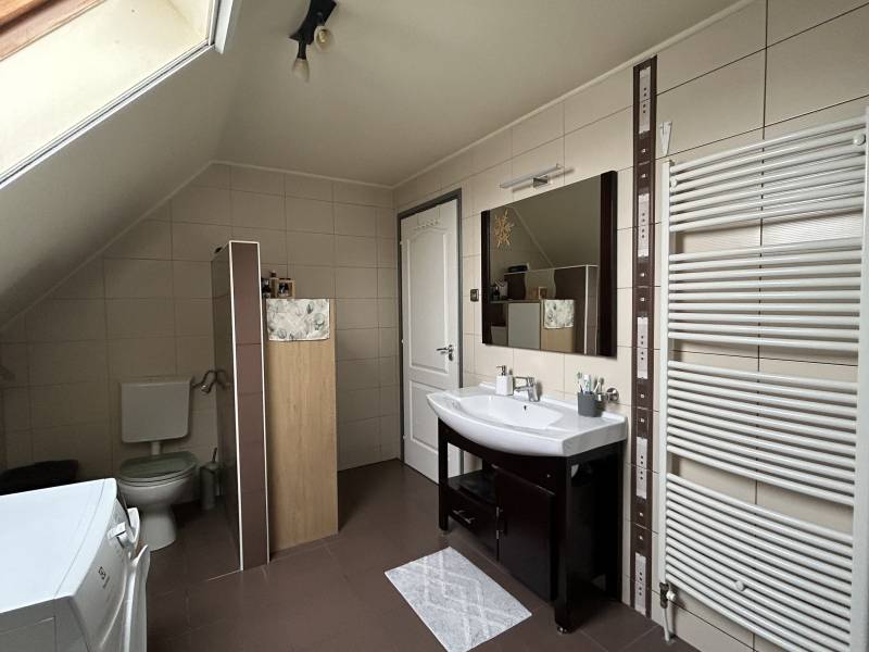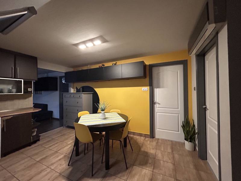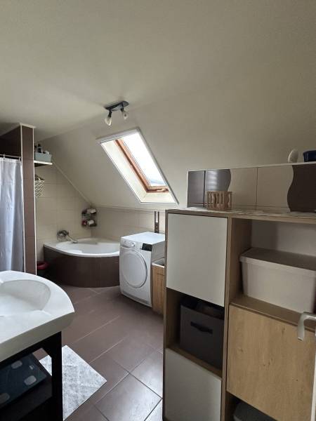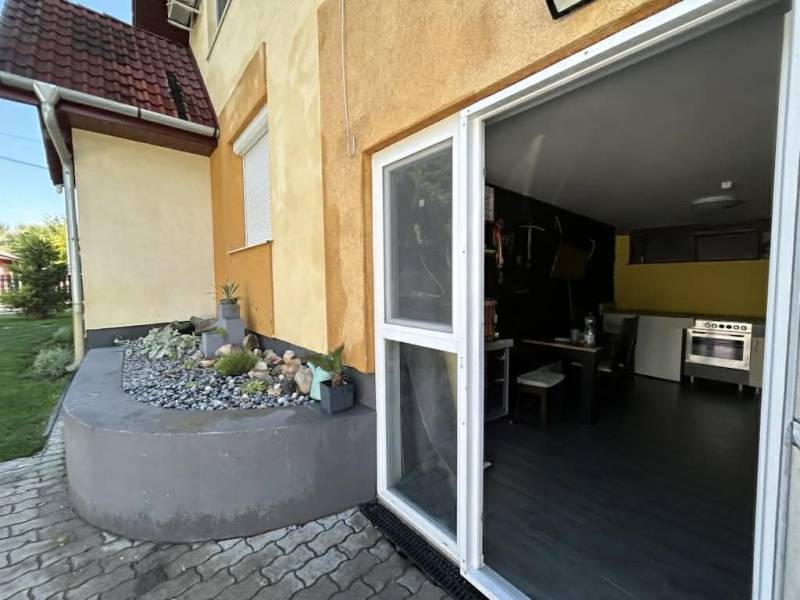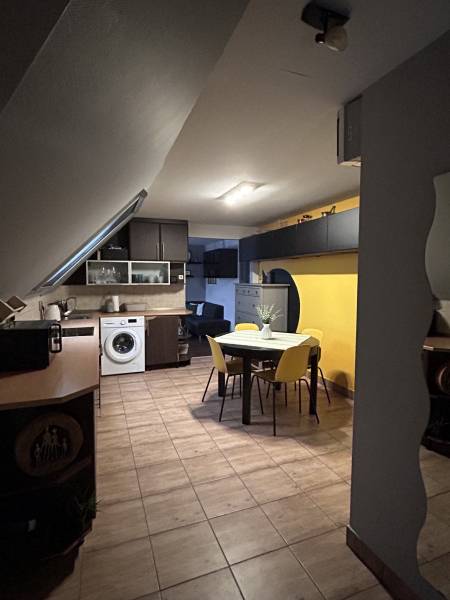 Eladó emeleti társasházi lakás erdős, nyugodt környezetben – Dabas központjában! Dabas központjában, csendes zsákutca végén, erdős környezetben eladó egy 82 nm-es, tégla építésű, emeleti társasházi lakás, saját kerttel és számos extrával.Szerkezeti jellemzők:• Falazat: hőszigetelt 38-as Porotherm tégla• Tetőszerkezet: fa szerkezetű, cserép fedéssel Helyiségek:• 2 + 1 félszoba• nappali• konyha (beépített, háztartási gépekkel együtt) –étkező • fürdőszoba• spejz• lépcsőfeljáró• erkély Műszaki tartalom:• Gázcirkó fűtés, radiátorokkal• Hűtő-fűtő klíma• Kétrétegű műanyag nyílászárók• Jó állapotú, festés után azonnal költözhető Extrák:• 300 nm-es parkosított, saját kert• kb. 30 nm-es garázs, elektromos garázskapuval• 12 nm-es nyári konyha, gépesített konyhabútorral• 20 nm-es fa szaletli• Automata öntözőrendszer• 20 méter mély fúrt kút• Elektromos kertkapu • külön WC az udvaron Elhelyezkedés:• Csendes, forgalomtól mentes zsákutca, barátságos szomszédok• Erdős, természetközeli környezet• Iskola, óvoda, boltok, buszmegálló pár percen belül elérhető Az ingatlan kizárólag készpénzes vevők részére eladó. Gyors birtokbaadás lehetséges.