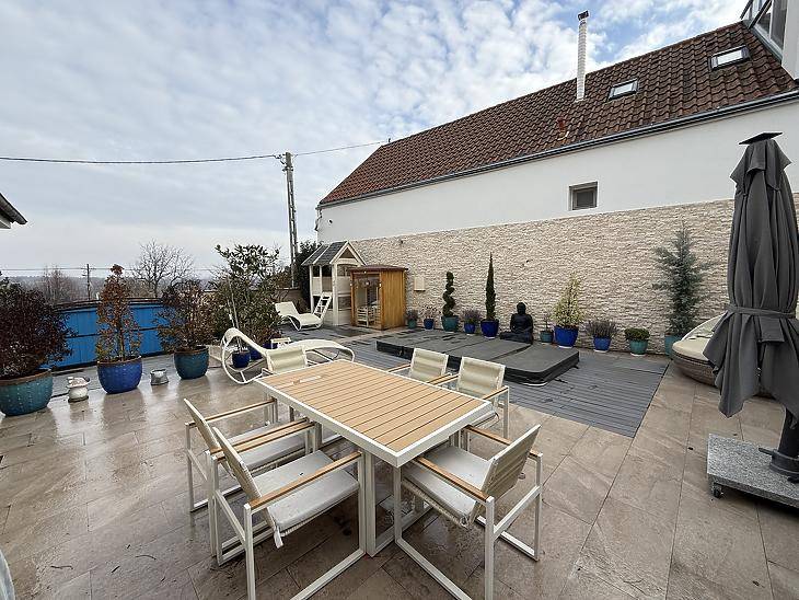 DUNAI PANORÁMÁS, ÖNÁLLÓ CSALÁDI HÁZ ELADÓ SZENTENDRE BELVÁROSÁBAN! KÖRNYÉK:Szentendre történelmi hangulatú belvárosában, a Fő tértől mindössze 10 perc sétatávolságra kínálunk megvételre egy kivételes adottságokkal rendelkező, dunai panorámás, önálló családi házat. A Duna korzó körülbelül 11 perc alatt, a HÉV-megálló mintegy 25 perc alatt érhető el gyalogosan, a közelben pedig számos kisbolt, gyógyszertár és egyéb szolgáltatás biztosítja a kényelmes mindennapokat.HÁZ JELLEMZŐI:-A 2012-ben, prémium minőségben épült ingatlan 220 m² lakóterülettel rendelkezik, amely egy 345 m²-es, intim hangulatú telken helyezkedik el.-A ház 38 cm-es Porotherm téglából épült, homlokzatán 15 cm vastag hőszigeteléssel, amely energiatakarékos és időtálló megoldást biztosít. A háromrétegű műanyag nyílászárók tovább növelik a komfortérzetet és a hőhatékonyságot.-Az elektromos hálózat 3×25 Amper kapacitású, a fűtésről gázkazán gondoskodik. Plusz mindegyik helyiségben inverteres klímák kerültek beszerelésre.-Az ingatlan modern műszaki tartalommal felszerelt: okosotthon-rendszer segíti a mindennapi kényelmet, az elektromos úszókapu és az egyállásos gépkocsibeálló pedig praktikus megoldást kínál. Az autóbeállóhoz elektromos autótöltő is tartozik.-A kertben kialakított szauna és a beépített medence igazi különlegességet jelentenek, amelyek tökéletes kikapcsolódást biztosítanak az év minden szakaszában. -Az ingatlan ideális választás mindazok számára, akik a belvárosi elhelyezkedést, a dunai panoráma nyújtotta egyedi látványt, valamint a modern, minőségi kivitelezést egyaránt fontosnak tartják.FINANSZÍROZÁS:Banki finanszírozással is megvásárolható, melyben irodánk ingyenes tanácsadással áll rendelkezésükre! VEVŐINK RÉSZÉRE A KÖZVETÍTÉS DÍJTALAN! A hirdetésben szereplő adatok tájékoztató jellegűek!