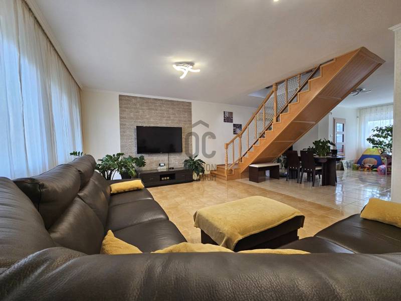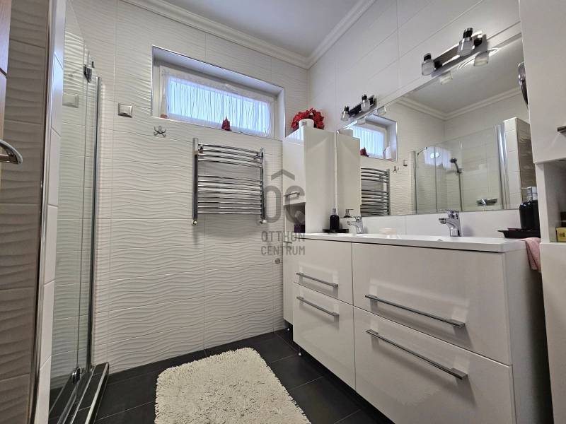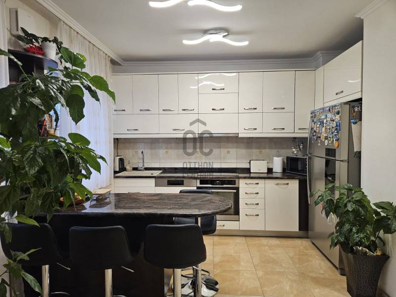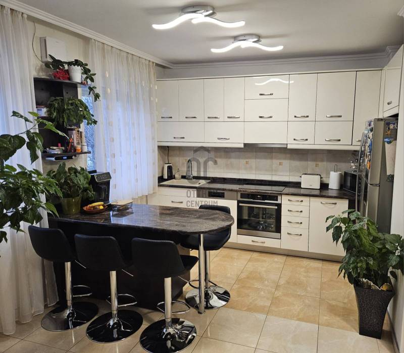 Debrecen Szabadságtelepének csendes, kertvárosi részén, a Vámospércsi útból nyíló, aszfaltozott utcában eladó egy háromszintes ikerház, amely ideális választás azoknak a családoknak, akik nyugodt környezetben, mégis jó infrastruktúrával szeretnének élni.Az ingatlan 450 m²-es telken helyezkedik el, nettó 132 m² lakótérrel, valamint egy 71 m²-es, jól kihasználható pinceszinttel.A házba belépve egy világos, tágas nappali–konyha–étkező tér fogad, amely a családi élet központja lehet.Innen nyílik egy 10 m²-es fedett terasz, ahol a reggeli kávé vagy az esti beszélgetések igazán kellemesek.A konyha minőségi beépített bútorokkal és gépekkel, gránit munkapulttal készült, az étkezőnél bőven van hely a közös étkezésekhez.A földszinten található:-Épített zuhanyzós fürdőszoba WC-vel-Ajtóval leválasztott, praktikus előszoba beépített tárolókkal-Padlófűtés, amely kellemes meleget biztosít a hidegebb napokonFelújítások – amik a mindennapokat teszik kényelmesebbé:-Korszerűsített fűtésrendszer, padlófűtéssel a földszinten és radiátoros fűtéssel a tetőtérben-Fürdőszobák és földszint minőségi burkolatainak cseréje-Laminált burkolatok cseréje a szobákbanA tetőtérben található:-Három külön nyíló, világos hálószoba , ahol minden családtagnak jut saját tér-A két szobából nyíló loggia csendes pihenést kínál-Sarokkádas fürdőszoba és külön WC pedig segíti a reggeli készülődéstSokoldalúan használható pinceszint:-Kétállásos garázs-Kazánház és kamra-Külön WC és zuhanyzó-Tökéletes tárolásra, hobbira vagy akár kisebb műhelynek is.Gondozott kert, biztonságos környezet:A füvesített, körbekerített kert automata öntözőrendszerrel ellátott, így könnyen karbantartható.Az automata kaputechnika és a térkövezett kerítés előtti parkoló a mindennapi kényelmet szolgálja.Elhelyezkedés, amit a család is szeretni fog:-Iskola, óvoda a közelben-Gyógyszertár, üzletek könnyen elérhetők-Lidl, Aldi, Penny néhány percre-Csendes, folyamatosan fejlődő városrészEz az ingatlan felújított, jól élhető családi otthon, ahol a tágas terek, a kert és a nyugodt környezet valódi életminőséget ad. Ha olyan otthont keres, ahová jó hazatérni, hívjon bizalommal, és tekintse meg személyesen!Az alaprajz tájékoztató jellegű.Az ingatlan \"Felező díjcsomagban\" lett megkötve, kérem az Otthon Centrum oldalán tájékozódjon a részletekről!Ez az ingatlan a \"Felező csomag\" megbízási portfólióhoz tartozik. Részletek az Otthon Centrum weboldalán.