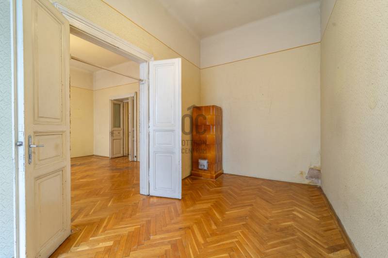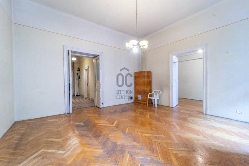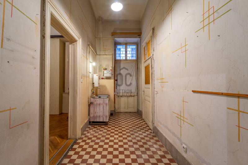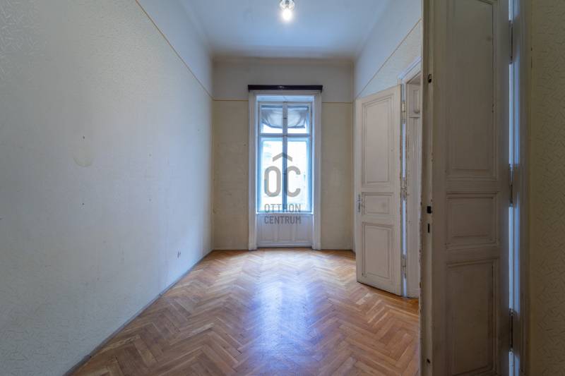 A VII. kerület egyik legismertebb részén, a Dohány utcában, a New York kávéház közvetlen közelében kínálunk megvételre egy 84 m²-es, 1. emeleti, teljes körű felújítást igénylő lakást.Ez az ingatlan kifejezetten jó fejlesztési / befektetési alap.A lakás fő erősségei:•két külön bejárat (előszoba + konyhai bejárat a folyosóról)•392 cm belmagasság – galériázható, loft jelleg kialakítható•funkcionálisan kettéosztható alaprajz•utcai nézetű, nagy méretű helyiségek•teljesen szabadon újragondolható belső elrendezés•minden műszaki elem felújítandó (ablakok, padló, fűtés, villany, konyha, fürdő)A konyhában található beugró korábban ajtóként funkcionált.Iroda / rendelő szempontból:•1. emeleti elhelyezkedés•két bejárat – ügyfél- és privát rész leválasztható•utcai, világos helyiségek•reprezentatív belvárosi környezet•iroda, rendelő, stúdió funkcióra is alkalmas térstruktúraTársasház:•jó állapotú homlokzat•felújítás alatt álló közös területek (függőfolyosók megerősítése, bejárati csarnok felújítása már megtörtént)•jó közös képviselet•lift nincsLokáció:•Dohány utca•New York kávéház ~100 méter•kiváló tömegközlekedés•folyamatos bérlői és irodai kereslet________________________________________Ez az ingatlan azoknak szól, akik meglátják a struktúrában és a lokációban rejlő potenciált.Megtekintés előzetes egyeztetés alapján.Ez az ingatlan a \"Felező csomag\" megbízási portfólióhoz tartozik. Részletek az Otthon Centrum weboldalán.