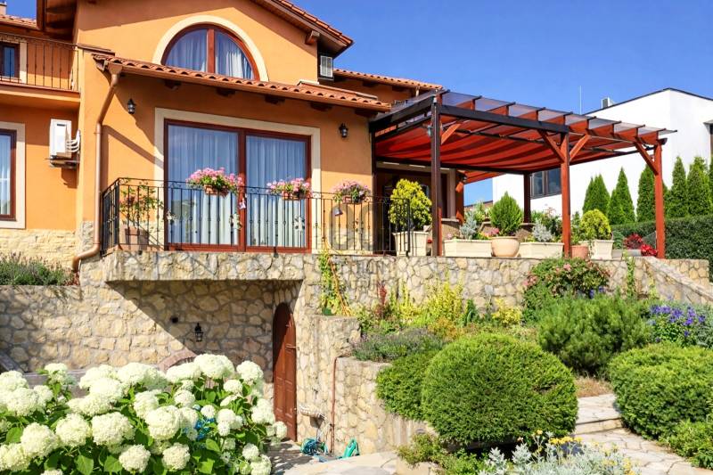 Pest vármegyében, Nagykovácsi egyik keresett, nyugodt lakóövezetében kínálunk megvételre egy 209 m² hasznos alapterületű, korszerű kialakítású családi házat, 987 m²-es, parkosított telken. Az ingatlan kiváló választás nagycsaládosok, többgenerációs együttélésben gondolkodók vagy otthoni munkavégzéshez tágas életteret igénylők számára.Ingatlan paraméterei:2 nappali, 5 külön nyíló hálószoba, 3 fürdőszoba, 32,2 m²-es, kertkapcsolatos terasz, 16 m²-es és 11,5 m²-es erkély, déli tájolás, tehermentes jogi státusz.Elrendezés és belső kialakítás:A ház átgondolt alaprajzi struktúrával rendelkezik. A két nappali elkülöníthető funkciókat tesz lehetővé: reprezentatív fogadótér, családi élettér, dolgozószoba vagy hobbihelyiség egyaránt kialakítható. Az amerikai konyhás nappali tágas, természetes fénnyel bőségesen ellátott, közvetlen kapcsolatban áll a terasszal és a kerttel. A hálószobák szeparáltan helyezkednek el, biztosítva az intimitást és a zavartalan pihenést. A három fürdőszoba kényelmes használatot garantál akár nagyobb létszámú család számára is.A déli fekvésnek köszönhetően a lakóterek egész nap világosak, energiahatékonysági szempontból is kedvező adottságúak.Műszaki tartalom: gáz cirkó fűtési rendszer, split klímaberendezés, jó műszaki és esztétikai állapot.Külső terek:A gondozott, intim kert ideális gyermekes családok számára, valamint szabadtéri pihenésre, kerti rendezvényekre. A terasz és a két erkély további használható életteret biztosít, panorámás kilátással a zöld környezetre.
