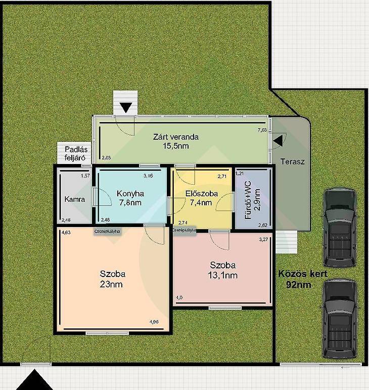 IV. kerületben, Újpest-kertvárosában, 329nm-es telken fekvő, 66nm-es 2szobás családi ház eladó, 15,5nm-es verandával.A telek osztatlan közös, használati megosztással, az ingatlan pedig peresített helyrajzi számmal és Alapító Okirattal rendelkezik, így elővásárlási joga van a szomszédnak. Hitelezhető, tehermentes!A ház 1960.-ban épült téglából, 2022.-ben pedig teljeskörűen felújították. Az épületet külsőleg leszigetelték (10cm), új tetőcserepeket és ereszt kapott. A villany-vezetékeket áthúzták rézre, a nyílászárók műanyag thermo üvegesek, a szobák laminált parkettások, a többi helyiség járólapos. A konyhabútort kicserélték, a fürdőszobát újra csempézték. A fűtésről két gázkonvektor és két cserépkályha gondoskodik.A veranda felújítása és a kert rendezése az új tulajdonosra vár.Kertben található több régi fészer/tároló.A telek használati megosztását tekintve, a szomszéddal még egy közös 92nm-es kert rész is tartozik a házhoz, ahol két autó beállási lehetősége adott. Igény szerint, akár a mellette levő telek is megvásárolható, amin jelenleg egy befejezetlen téglából épülő ház van, így egyben 685nm-es építési telket kap, melynek összesen az irányára: 125.900.000.-FtA közlekedés kiváló, néhány perc sétára található a 20E, 220, 96, 296 buszok megállója melyekkel Újpest központ, Keleti pályaudvar és Újpalota is rövid időn belül elérhető! A hirdetésben szereplő adatok tájékoztató jellegűek!