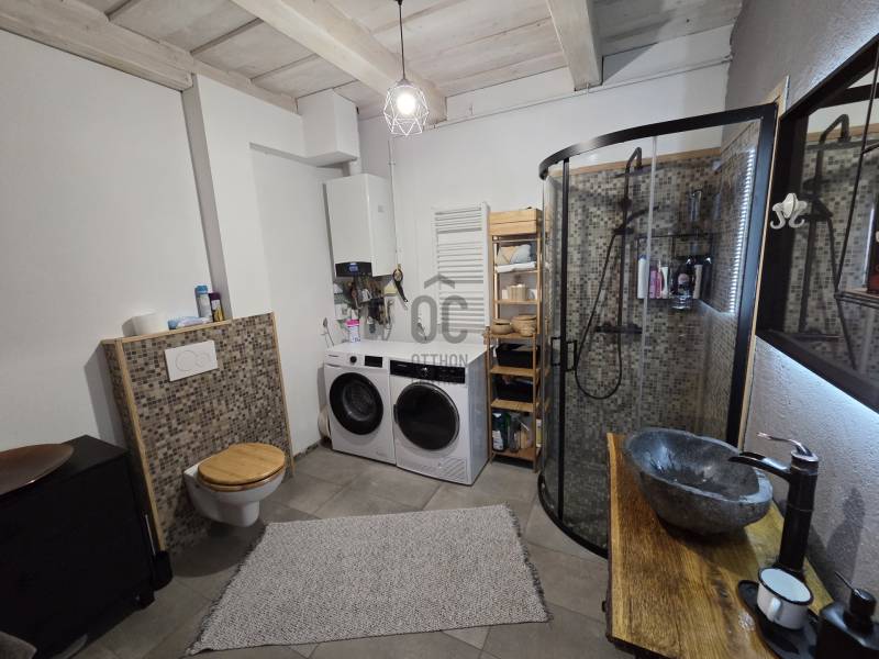 A Balaton-felvidék egyik legkedveltebb településén, Nemesgulácson kínálunk megvételre egy karakteres, masszív szerkezetű, kőből épült családi házat, amely a közelmúltban teljes körű műszaki és esztétikai felújításon esett át. Az ingatlan harmonikusan ötvözi a hagyományos vidéki építészet értékeit a modernebb belsőépítészeti megoldásokkal.A kétszintes lakóépület stabil kőszerkezettel rendelkezik, amely nemcsak időtállóságot, hanem kiváló hőtartó képességet is biztosít. A felújítás során megújult a teljes gépészet, a villamoshálózat, a víz- és csatornarendszer, valamint a burkolatok és nyílászárók is korszerű, minőségi kivitelben kerültek beépítésre.Fűtése gázkazánról történik radiátoros hőleadókkal, ezt egészíti ki a nappaliban beépítésre került fatüzelésű kis kályha. Az épület hűtését klíma biztosítja.A belső tér kialakítása a mai igényekhez igazodik: modern burkolatok és praktikus térszervezés jellemzi. A ház egyik különleges értéke a hagyományos parasztfödém, amely autentikus hangulatot kölcsönöz az enteriőrnek, miközben esztétikai fókuszpontként is funkcionál. A természetes anyaghasználat és a korszerű kialakítás együttesen teremtenek egyedi, mégis otthonos atmoszférát.Az alsó szinten tágas élettér került kialakításra, amely ideális családi együttlétekhez és vendégfogadáshoz. A konyha - nappali - étkező mellett egy hálószoba, és fürdőszoba található. A hálóból közvetlen udvarkapcsolat nyílik egy fedett teraszrészen keresztül.Az emeleti szinten egy hálószoba / gyerekszoba található, valamint egy kézmosó +WC, a fennmaradó tér pedig dolgozószobának vagy akár vendégtérnek is kiválóan alkalmas, így a ház többgyermekes család vagy akár otthoni munkavégzés számára is optimális választás lehet.A házat körülölelő telek zárt, több autó egyidejű parkolására is elegendő helyet biztosít.A fedett teraszrész lehetőségeg biztosít nyári konyharész kialakítására is.Az ingatlan elhelyezkedése kiváló: központi helyen található, a település infrastruktúrája könnyen elérhető. A Balaton és a környező tanúhegyek közelsége páratlan természeti adottságokat biztosít, legyen szó állandó lakhatásról vagy akár hétvégi, nyaraló jellegű használatról.Ez az ingatlan ideális választás mindazok számára, akik egy egyedi karakterrel rendelkező, mégis korszerű műszaki tartalommal bíró otthont keresnek a Balaton-felvidéken.Amennyiben kérdése merülne fel az ingatlannal kapcsolatban, vagy szeretné azt megtekinteni, kérem keressen megadott elérhetőségeim egyikén!Az adatok kizárólag a megbízóink által rendelkezésünkre bocsátott információkon alapulnak.Fentiekre tekintettel, az adatok teljességéért, helyességéért és aktualitásáért nem vállalunk felelősséget.Az árváltozás, adatmódosítás és közbeni értékesítés jogát fenntartjuk, mindezekért jogi felelősséget nem áll módunkban vállalni.