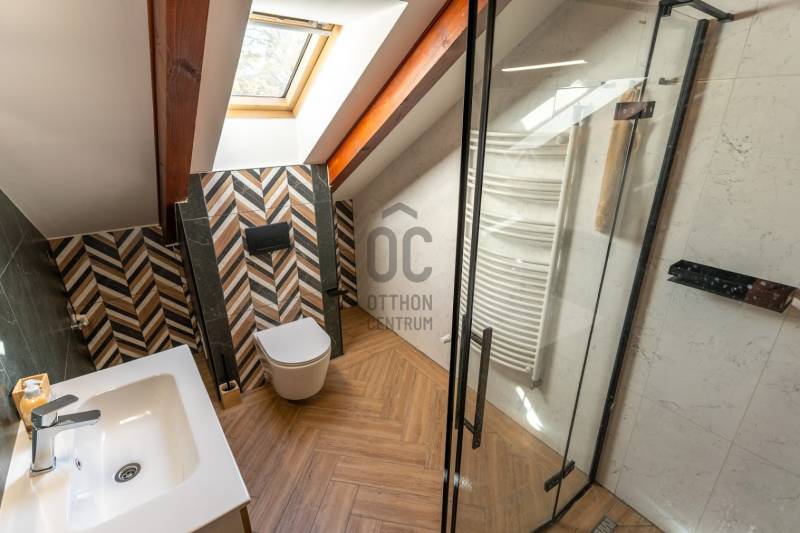 Fedezd fel álmaid otthonát Budapest XIV. kerületének csendes, de mégis pezsgő részén Zuglóban!Ez a felújított, kiváló állapotú, sorház jellegű, két szintes családi ház nem csupán egy ingatlan, hanem egy életstílus, amely ideális azok részére, akik értékelik a kényelmet és a természet közelségét.Nappali+ 5 tágas hálószobával rendelkezik, így bőséges teret biztosít a család számára, vagy akár baráti összejövetelekhez is. Két fürdőszobája garantálja, hogy reggelente senkinek sem kell várakoznia és emellett még vendég mosdó is megtalálható.A házhoz tartozik egy 403 négyzetméteres telek, amely rendezett kerttel rendelkezik. A füvesített kertben kiépített öntözőrendszer, 3x5 méteres hőszivattyúval fűthető medence, fedett sütögető rész és egy kis faház tárolónak is megtalálható.A 35 nm-es terasz tökéletes helyszín családi grillezésekhez vagy csak a napozáshoz.A prémium kivitelezés és a modern dizájn megjelenik a ház minden részletében. A kandallós nappali a téli estéken biztosítja a meghitt hangulatot. Az ingatlan fűtése gázkazán (viessmann) történik, radiátoros hőleadókkal, valamint padlófűtés is ki lett építve.Hűtése klímával, így a legforróbb nyári napokon is kellemes hőmérsékletet biztosít.A riasztó és kamera rendszer és a biztonságos környék nyugalmat ad a mindennapokhoz.Két autó számára udvari beálló áll rendelkezésre elektromos kapuval, biciklitárolóval.Fenntartása nagyon kedvező, köszönhető ez az 50 cm-es téglafalazatnak és a modern nyílászáróknak is.Az ingatlan tehermentes, így gyorsan birtokba vehető kifizetést követően.A környék kiemelkedő közlekedési lehetőségekkel rendelkezik: a kitűnő közlekedésnek köszönhetően gyorsan elérheted a belvárost. A csendes utcák és a barátságos szomszédság ideális környezetet biztosítanak az ideköltözők számára, akik szeretnék élvezni a városi élet előnyeit, miközben a természet lágy ölén pihenhetnek. Ne habozz, ha egy exkluzív, modern és családbarát otthont keresel, ami minden igényt kielégít!Várom megkeresésedet hétköznap és hétvégén is!Ez az ingatlan a \"Felező csomag\" megbízási portfólióhoz tartozik. Részletek az Otthon Centrum weboldalán.
