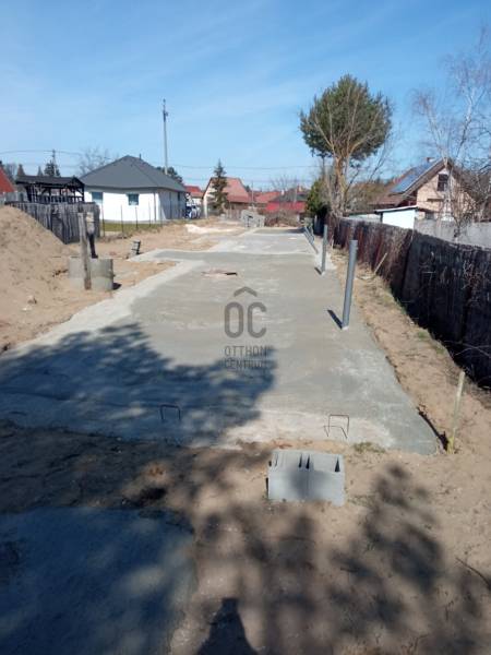 Veresegyházon Viczián városrészben kínálunk megvásárlásra egy kiváló lehetőséget kivitelezőknek vagy összeköltöző családoknak, akik egy megkezdett építkezés befejezésével két újépítésű ingatlant alakíthatnak ki saját részükre. A tervezett ikerházak egyenként 132 nm körüli méretűek. Alaprajz a képek között feltöltve.Telek mérete 940 nm, nagy előnye, hogy két utcára nyílik, így a földszintes ikerházak háttal érintkeznek egymással, mindkét tulajdonos külön utcáról járhat be a saját ingatlanába, nincs egymáson átjárás.A betonalap megvan, benne a csatorna közmű, telken belül a villany bekötés ( 2 lakásra kialakítva), gáz szintén telken belül, víz az utcán a telek előtt, onnan beköthető.A tervezett ingatlanok paraméterei:-földszintes kialakítás-tágas nappali-konyha-étkező +3 hálószoba (12 nm felettiek), két fürdőszoba, kamra, háztartási helyiség, külön mellékhelyiség, nagy terasz, garázs, az egyik hálószobához privát fürdőszoba tartozik.Saját telek mérete 470 nm.Teljes tervdokumentáció a vételár része.A környék csendes, rendezett, családi házakkal beépített.Vonatállomás a közelben található.