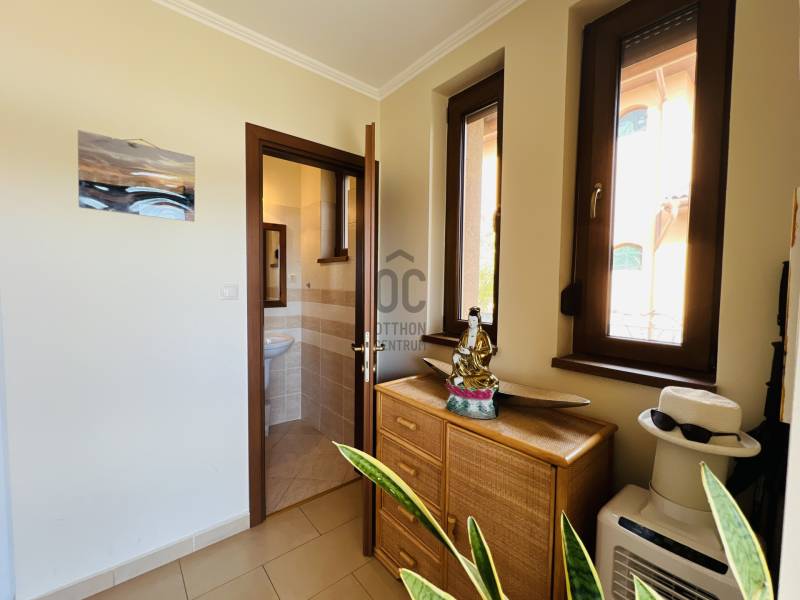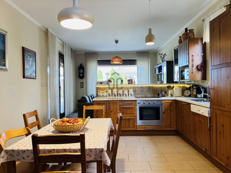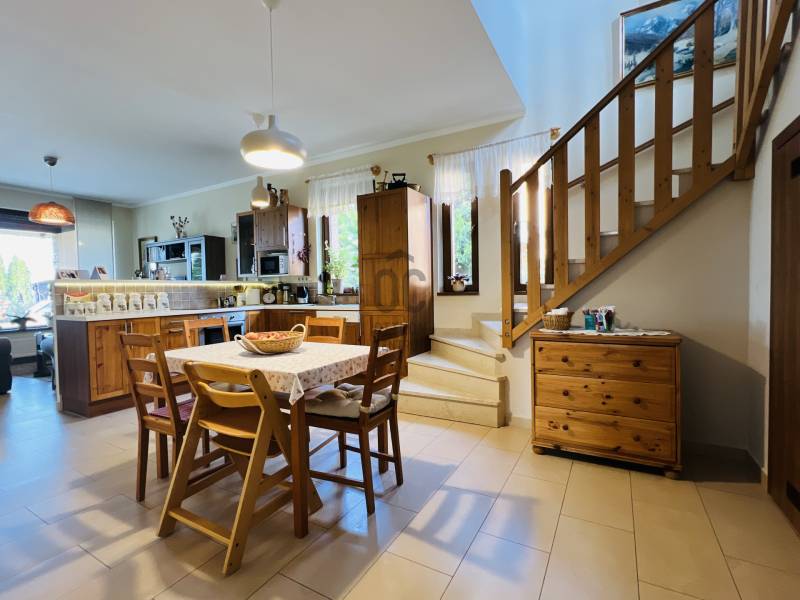 Eladó családi ház Szántód szívében – balatoni részpanorámával, SAJÁT TULAJDONHÁNYADDAL A PRIVÁT STRANDONSzántód gyönyörű, mediterrán hangulatú, rendezett házas övezetében kínálunk megvételre egy 2011-ben épült, szabadon álló, impozáns, lakóház besorolású családi házat, amely minden részletében az élhetőséget és a kényelmet szolgálja.FŐBB ADATOK:*Lakótér: 130 nm*Terasz: 47+ 11 nm *Garázs: 34 nm (elektromos kapuval, előszobából közvetlen megközelítéssel)*Telek: 700 nm, teljesen körbekerített, fejlett örökzöld növényzettel*Kilátás: Balatoni részpanoráma a kertből és az emeleti szülői hálóból*Építés éve: 2011*Szerkezet: tégla falazat, 2 szintAz udvarba elektromos úszókapun keresztül juthatunk be, ahol térkövezett autóbeálló biztosít további parkolási lehetőséget.ELOSZTÁSFöldszint:*Fedett előterasz a bejáratnál*Előszoba vendég WC-vel*Élőszobából megközelíthető garázs*Tágas, napfényes nappali–étkező–konyha egy légtérben*Kamra*Hálószoba*Fürdőszoba WC-vel*Kapcsolat a nagyméretű teraszhozEMELETKözlekedő:*Fürdőszoba*Külön WC*3 hálószoba, melyek közül egyből balatoni részpanoráma tárul elénkA praktikus elrendezés, ideális nagyobb család számára is, minden helyiség jól kihasználható.MŰSZAKI TARTALOM & EXTRÁK:*Vételár tartalmazza a privát strand tulajdonjogát*Engedélyeztetett tervrajzokkal rendelkezik kerti medencéhez*Gázkazánról működő fűtés*12 cm-es homlokzati szigeteléssel ellátott*Padlófűtés a közösségi terekben*Radiátor a hálószobákban*Melegvíz: gázkazán + 120 literes puffertartály*Használaton kívüli kémény – vegyes tüzelésű kazán beépíthető*Műanyag nyílászárók fa mintázattal*Redőny és szúnyogháló*Riasztórendszer*Locsolóvíz külön mérőórával*Bútorzat megegyezés szerintKÖRNYEZET&ÉLETÉRZÉSAz ingatlan kertvárosias, mégis kiváló infrastruktúrával rendelkező környezetben található, közel a mindennapi ellátó egységekhez. RÉV pár száz méterre.Reggelét akár egy kávéval indíthatja a teraszon, majd pár perc alatt a tihanyi Visszhang domb tetejéről élvezheti a balatoni panorámát.Kinek ajánljuk?Akik egy átgondolt, praktikus és élhető otthont keresnek.Családoknak, akik értékelik a tágas tereket és a minőségi kivitelezést.Azoknak, akik a Balaton közelségét szeretnék élvezni, mégis nyugodt lakókörnyezetben.Ez a ház nem csupán ingatlan, hanem életstílus a Balaton partján.Amennyiben felkeltette érdeklődését, keressen bizalommal!Az adatok kizárólag a megbízóink által rendelkezésünkre bocsátott információkon alapulnak.Fentiekre tekintettel, az adatok teljességéért, helyességéért és aktualitásáért nem vállalunk felelősséget.Az árváltozás, adatmódosítás és közbeni értékesítés jogát fenntartjuk, mindezekért jogi felelősséget nem áll módunkban vállalni.