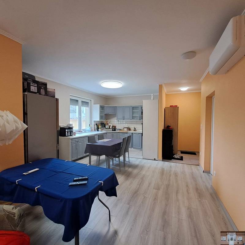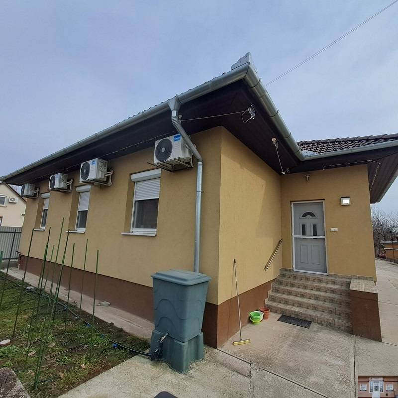 KIZÁRÓLAG A JUDIT INGATLAN-, ÉS HITELIRODA KÍNÁLATÁBAN!Monoron, központtól nem messze teljesen felújított 92 m2-es társasházi lakás 200 m2-es telekkel eladó.A telken 2019-ben 4 lakásos (2×2) társasház került kialakításra, ez az ingatlan az 1. lakás, mely a ’70-es években épült masszív betonalapra rakott sárfalból. 2019-ben teljeskörű felújításon esett át (szigetelt aljzatbeton, teljesen új tetőszerkezet, minden vezeték, burkolat, valamint a nyílászárók cserélve lettek,…).Közös kocsibehajtóról tud mindenki a saját, lekerített telkére beállni. Az ingatlanhoz tartozó saját telken fedett kocsibeálló, és egy tároló található.Minden lakás saját mérőórákkal rendelkezik (gáz, víz, villany, csatorna).A ház lakóterülete 92 m2, melyben előszoba, nappali-konyha-étkező, kamra, 3 szoba, fürdőszoba, és WC található.A lakás fűtését és melegvíz ellátását kondenzációs gázcirkó biztosítja, valamint inverteres klíma is fel lett szerelve.A konyhabútor gépekkel az ár részét képezi (mosogatógép, főzőlap, sütő, mikró).AZ ÁR FIX, NEM ALKUKÉPES!!!DÍJMENTES HITELÜGYINTÉZÉS IRODÁNKBAN!!!OTTHON START HITEL, CSOK+, BABAVÁRÓ KÖLCSÖN, KAMATTÁMOGATOTT LAKÁSHITELEK, ….2003 ÓTA AZ ÖNÖK BIZALMÁBAN!