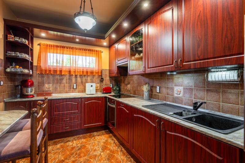 Székesfehérváron, az Öreghegy egyik legkedveltebb és legkeresettebb részén, a háromágú Millenniumi emlékmű közelében kínálunk megvételre egy exkluzív, kétgenerációs családi házat, amely ötvözi a luxust a nyugalommal.A ház egy 1421 m²-es, parkosított dupla telken helyezkedik el, amely két utcáról is megközelíthető, többállásos parkolóval. A telket gondozott növényzet, óriás hibiszkuszok, hortenziák, fenyők, valamint egy kerti pavilon, sütögető és koi pontyokkal, tavirózsákkal díszített kerti tó teszi különlegessé. Az automata öntözőrendszer és a robotfűnyírók gondoskodnak a folyamatos harmóniáról.A 2006-ban teljes körűen felújított és bővített ház nettó 338 m² lakóterülettel rendelkezik. Az épület Porotherm 30-as téglából készült, 8 cm-es külső hőszigeteléssel. Két külön bejáratú, önálló lakás található benne, külön gázórával és gázkazánnal, így a rezsicsökkentett árkategóriába tartozik.Helyiségek elosztása:A ház két szintje külön bejárattal rendelkezik, így akár kétgenerációs együttélésre is tökéletes. • Pinceszint: garázs, tároló, fürdőszoba, hobbi szoba, szauna, bár/borozó • Földszint: 45 m²-es nappali teraszkapcsolattal, étkező, konyha, hálószoba, fürdőszoba, garázs, tároló • Emelet: nappali erkélykapcsolattal, három hálószoba, konyha-étkező kamrával, fürdőszoba, külön WC, háztartási helyiség, panorámás erkélyFelszereltség és extrák: • okosotthon vezérlő • kamerarendszer • robotfűnyírók • automata öntözőrendszer • szauna • borozó/bárhelyiség • két garázs + tárolókMiért különleges ez az ingatlan? • Kiváló választás nagy családoknak vagy kétgenerációs együttélésre • Alkalmas vállalkozásra (pl. ügyvédi iroda, magánorvosi rendelő) – elegáns, reprezentatív környezetben • Gondosan karbantartott, azonnal költözhető állapot • Öreghegy egyik legjobb elhelyezkedése – csend, madárcsicsergés, mégis közel a város központjához• Teljes ingatlan irányára: 285 millió Ft (843.195 Ft/m²) • A két lakás külön-külön is megvásárolható: 142,5 millió Ft / lakásNe hagyja ki ezt a ritka lehetőséget, ha Székesfehérvár legszebb részén, patinás környezetben szeretne exkluzív, tágas és biztonságos otthont találni – vagy presztízsértékű vállalkozást indítani!#SzékesfehérvárIngatlan #ÖreghegyEladóHáz #KétgenerációsCsaládiHáz #ExkluzívOtthon #EladóHázSzékesfehérvár