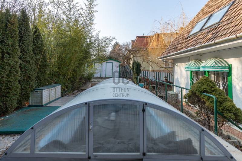 Új tulajdonosát keresi egy 187 nm-es, 3 szintes, nappali+5 szobás, duplakomfortos családi ház kerti medencével és lifttel Adyligeten, az erdő szomszédságábanKÖRNYÉK ÉS KÖZLEKEDÉS:- Budapest II/A kerülete, Adyliget, Irányi Dániel utca- A kerületet a Budai Tájvédelmi Körzet öleli körbe, így garantált a friss levegő- A csodálatos erdős vidék remek szabadidős és sportolási lehetőségeket kínál, számos kirándulóhely érhető el- Vásárlási és szórakozási lehetőségek a közelben- Több állami intézmény található a környéken, ezen kívül magán- és nemzetközi (francia, amerikai) óvodák és iskolákTELEK ÉS HÁZ:- 571 nm-es saroktelek- gondozott, részben térkövezett kert - 187 nm-es, 1988-ban épült, jó állapotú ingatlan - kerti sütő és medence - A 2013-ban történt korszerűsítés során kapott a ház belső liftet, melyet folyamatosan karbantartanak, továbbá teljes víz-, villany és gázvezetékcsere történt- A tetőteret szigetelték, a vegyes tüzelésű kazán mellett gáz-cirkó kazán biztosítja a meleget, az étkezőben padlófűtés van- A földszinten és első emeleten jó állapotú, fa hő- és hangszigetelt, a másodikon műanyag nyílászárók vannak- Felosztása: Földszint: előszoba, fürdőszoba, konyha, étkező, nappali, kazánház - melyen keresztül a garázsba jutunk Első emelet: egy tágas és kettő kisebb hálószoba, közlekedő, nagy fürdőszoba zuhanyzóval és káddal Második emelet: fürdőszoba, közlekedő, két kisebb hálószoba- Déli tájolásának köszönhetően világos nappali- A lakás nagy része parkettás, a konyhát, a fürdőszobákat és a kazánházat járólap borítja- Parkolásra a garázsban van lehetőség, az udvaron további egy gépkocsi számára van beállási lehetőségAmennyiben hitelre lenne szükséged, bank-független Hitel Centerünk díjmentesen versenyezteti minden bank és hitelintézet kínálatát, hogy számodra a legmegfelelőbb konstrukciót találjuk meg.