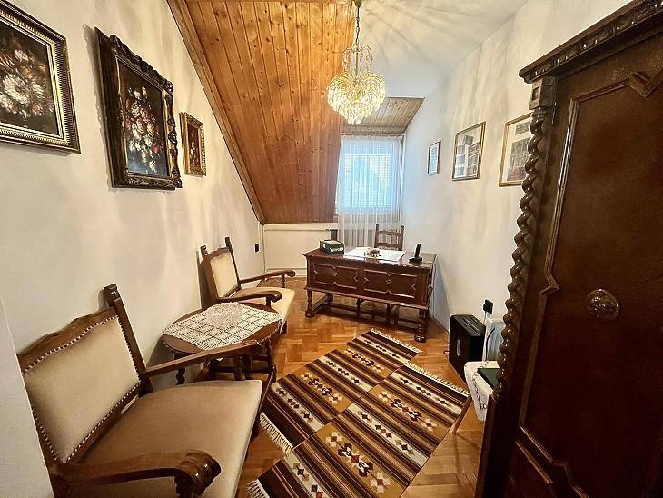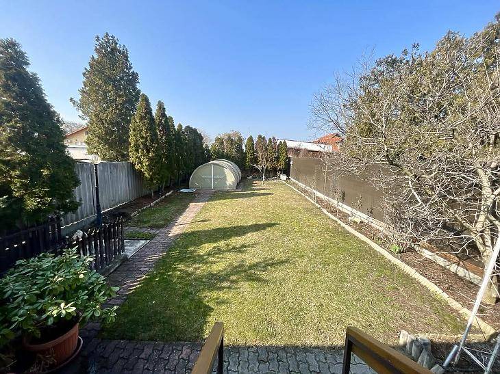 ELADÓ XV. KERÜLETBEN, RÁKOSPALOTÁN 146 M2-ES, 4 SZOBÁS, 2 FÜRDŐSZOBÁS ÖNÁLLÓ CSALÁDI HÁZ FEDETT TERASSZAL, FŰTHETŐ GARÁZZSAL, MEDENCÉVEL, GONDOTZOTT KERTTEL 364 M2 TELKEN.AZ ÉPÜLET JELLEMZŐI:A nettó 131 m2 tégla ház 1991-ben épült szinteltolással. Előkert és tágas, rendezett kert tartozik hozzá. A földszinten található egy ablakos gardrób, tárolóhelyiség, hidromasszázs zuhanykabinos fürdő és fűtött garázs elektromos kapuval. Fél emelettel feljebb nyílik a nagy, étkezős konyha, amelyből a 16 m2-es fedett teraszon át a gondozott hátsó kertbe léphetünk ki. A félemeleten tágas, napfényes nappali helyezkedik el látványkandallóval, faberakásos mennyezettel, valamint a Valentino burkolatú, kádas fürdőszoba. Szintén fél emelettel feljebb található egy kertre néző hálószoba, amit a következő szinten két külön bejáratú hálószoba követ. Igény esetén a padlástér tovább bővíthető. Az ingatlan minőségi anyagokból épült, időtálló, igényes kivitelezéssel. Műanyag hőszigetelt ablakokra cserélték a nyílászárókat, a lépcsőházban 4 ablak fa maradt. Pala fedi a tetőt. A kertben fúrt kútról működő automata öntözőrendszert építettek ki és egy 6X3 méteres, lefedhető medencét, amit hideg-meleg vízzel lehet feltölteni. Kandeláberes kerti világítás és a tuja- és rózsasorral szegélyezett pázsit emeli az udvar hangulatát. A garázs mellett 3 autó számára zárt parkolási lehetőség is biztosított a térkővel burkolt udvaron. Riasztórendszer és kamerás kaputelefon van beépítve. PARKOLÁS:Házkapcsolatos, fűthető garázs és még 3 autó számára biztosított kocsibeálló az udvarbanKÖZLEKEDÉS:Pár perc sétatávolságra közlekedik a 96, 130, 196, 196A, 296, 296A, 231, 231B buszIRÁNYÁR: 151 M FTFINANSZÍROZÁS:Az ingatlan banki finanszírozással is megvásárolható, melyben irodánk ingyenes tanácsadással áll rendelkezésükre!VEVŐINK RÉSZÉRE A KÖZVETÍTÉS DÍJTALAN !!A hirdetésben szereplő adatok tájékoztatás jellegűek!