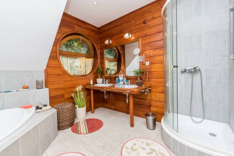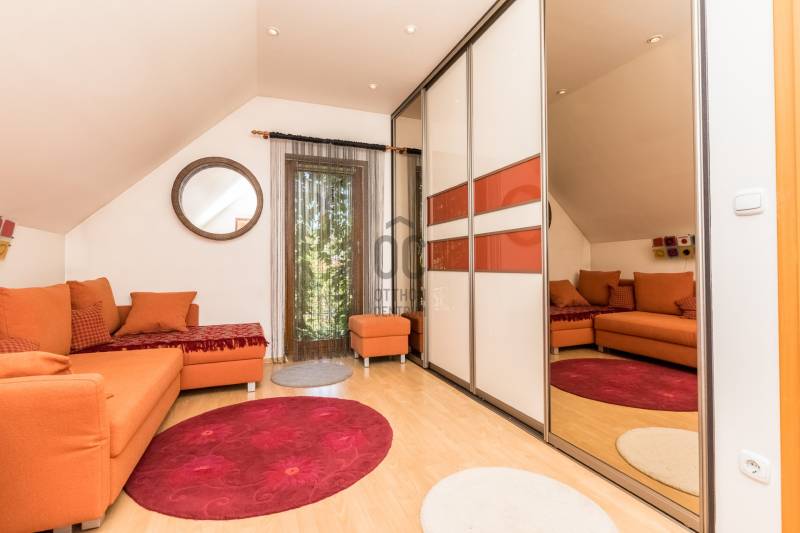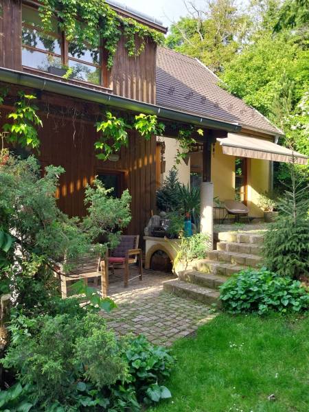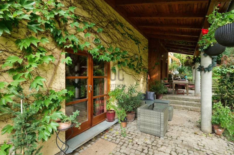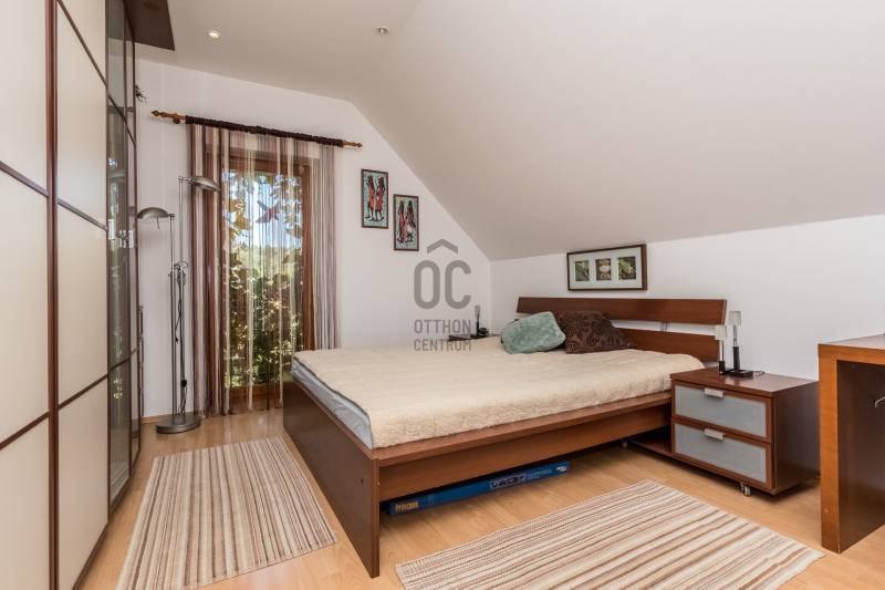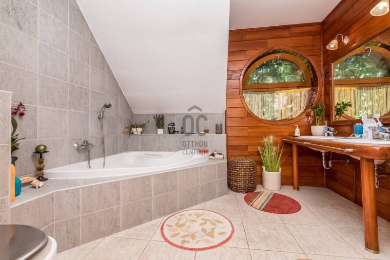 Csobánka történelmi települése a smaragd az északi agglomeráció koronáján. A pilis lábánál elterülő falusias bájú községet háborítatlan zöld öleli, sziklás és erdős hegylánctól körülvett gyönyörű völgykatlanban fekszik mindössze 15km-re Budapesttől!Tökéletes választás azok számára, akik a Fővároshoz kötve élnek, de nem kötnek abban kompromisszumot, hogy az Otthonuk a nyugalom szigete legyen!Itt, a Villa-negyedben került eladósorba egy UNIKÁLIS CSALÁDI HÁZ.Abszolút egyedi tervek, falakból megvalósított álmok születtek itt 1999-ben, melyet mi sem bizonyít jobban, hogy ekkor az épület megkapta az \"ÉV HÁZA\" díjat, valamint a Magyar Építészeti Kamara különdíjazottja lett.Domboldalba rejtett álomotthon ami tökéletes kompozíciója a romantikus Provence otthonnak és a kényelmes életterek alkotta funkciónak.A közel 1000m2-es hegyoldali telket tökéletesen kihasználva mind az építész mind a tájépítész egyedit alkotott. Az utcafronti terméskövezett támfalba rejtve 60m2-es 3állásos garázs valamint biciklitároló került. A ház 2 szintes elrendezésű, 203nettó alapterületén 2 külön, és egyben is használható lakótér valósult meg:Földszinten: elegáns előszoba/hall, mosókonyha-gépészeti helyiség, szeparált illemhely, hatalmas amerikai konyhás nappali kamrával, valamint térben szeparált dolgozószoba kaptak helyet. A nappali szinteltolással különül el, éke a frissen készült mázoskerámia cserépkályha és a hatalmas ablakokon át nyíló zavartalan zöldkerti panoráma. Erről a szintről elérhető a KÜLÖN LAKRÉSZ, -melynek külső bejárata is van, nappali+konyha+fürdőszoba elrendezésű így tökéletes választás nagyszülő elhelyezésére, fiatal felnőtt gyermek számára valamint ÜGYFÉLFOGADÁSRA, IRODAI TEVÉKENYSÉGRE, BEAUTY SZOLGÁLTATÁSOKRA, -így a vállalkozás együtt mégis szeparálva koordinálható otthonról!Emeleten: Fürdőszoba, 4 hálószoba, mind világos, kellemes méretű, az egyik walk-in gardróbbal felszerelt, 2-nek franciaerkélye van, a szülői lakrész pedig egy folyosó végén kialakított tágas hálószoba, saját fürdőszobával.Az elegáns terek jó műszaki felszereltséggel találkoznak, a házban PADLÓFŰTÉS van, KONDENZÁCIÓS KAZÁN biztosítja a hőszabályozást, a nyílászárók tömörfa-tokos thermoüveges egységek.Kiépített riasztórendszer, elektromos garázskapu, kerti tároló, víztisztító berendezés!A fenntartási költség ALACSONY, az épület hőtartása téli és nyári időszakban is tökéletes!A kert gyönyörű, buja díszcserjékkel, homlokzatra futó vadszőlővel kápráztatja el az ideérkezőt. Beállt, egészséges felnőtt növényzete nem csak dekorál, de árnyékot ad és levegőt szűr, így hatalmas érték annak, aki tudja mit ad a zöld az ember szívének!A növényzet gondozását automata öntözőrendszer segíti, a kerti szerszámoknak külön tároló áll rendelkezésre.Jöjjön el, tekintse meg, ha szereti a természetet és kívánja hogy a hétköznapjait körbeölelje a zöld, ha olyan otthont keres ahol a vállalkozása is elfér a család megzavarása nélkül, ha nagycsaládos és elege van a kompromisszumokból, - olyan otthonra vágyik ahol mindenkinek egészséges tér jut!Vigyázat! - ABSZOLÚT BELESZERETŐS, Ha megnézi nem keres majd tovább!-alaprajz feltöltése folyamatban, de mailben szívesen elküldöm!-