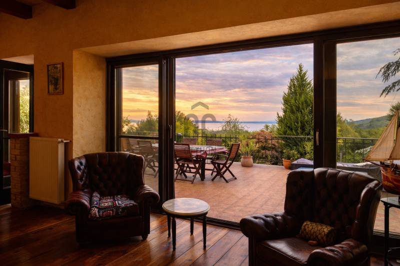 Felsőörs egyik legexkluzívabb részén, az Öreghegy csendes, természetközeli környezetében kínáljuk ezt a 2.113 m²-es telken elhelyezkedő, nettó 412 m²-es, háromszintes, 2018-ban teljes körűen megújított, kúria jellegű rezidenciát.A masszív szerkezet és a korszerű műszaki tartalom harmonikusan találkozik a klasszikus eleganciával. Egyedi fa nyílászárók, igényes belső kialakítás és letisztult terek biztosítják az időtálló minőséget.A birtok különlegessége a hangulatos borospince, a fedett kerti konyha és a 75 m³-es medence, amely privát wellness élményt teremt. A balatoni panoráma és az MK1-es övezet nyugalma valódi értéket képvisel.Ez az ingatlan nem csupán otthon, hanem életstílus.További részletekért és személyes megtekintésért várom megkeresését.