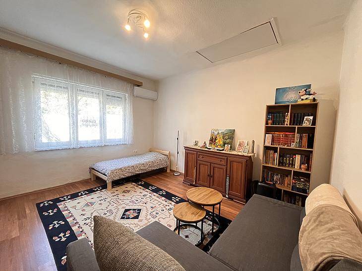 Békásmegyer- Ófaluban ELADÓ egy 50 négyzetméteres házrész 120 négyzetméteres telken!Az ingatlan az 1932-ben épült, viszont teljes felújításon esett át.A házrész jelenlegi elosztása 2 szobából, egy konyhából, egy fürdőből és előszobából áll. A nyílászárók műanyag thermo üvegesek.Az ingatlan utcára néző ablakokkal rendelkezik.Fűtésről a fa tüzelésű cserépkályha mellett klíma és a kisebb szobában padlófűtés gondoskodik. Ez átlagosan 30.000 Ft/hó.Az ingatlan bútorozott és gépesített, melyek megegyezés alapján a megvásárolhatóak.Tartozik az ingatlanhoz padlás, ahova a nappaliból lehet feljutni, valamint pince és két sufni is. Az egyik sufniba a víz is be van vezetve.A házrész megosztási szerződéssel van jogilag elkülönítve.Környékről:Közelben minden olyan szolgálatás megtalálható amire szüksége lehet a mindennapokban (kisebb élelmiszer boltok, piac, éttermek, gyógyszertárak). Gyerekes családoknak nagyon ideális hiszen játszóterek, Óvoda, Iskola, Egyetem van a közelben.Tömegközlekedés szempontjából is tökéletes hiszen pár perc sétára található számos buszmegálló, illetve a H5-ös hév.FINANSZÍROZÁS:Banki finanszírozással is megvásárolható, melyben irodánk ingyenes tanácsadással áll rendelkezésükre!VEVŐINK RÉSZÉRE A KÖZVETÍTÉS DÍJTALAN!A beépített bútorzat a vételár részét képezi.A hirdetésben szereplő adatok tájékoztató jellegűek.