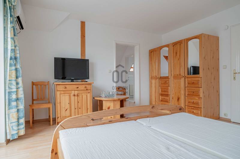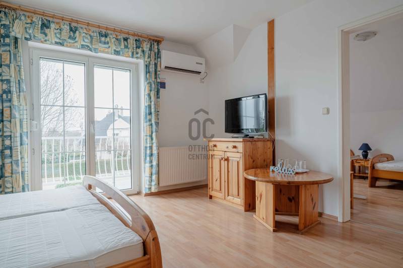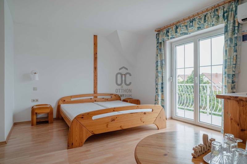 Kivételes lehetőség a Balaton egyik legkedveltebb településén!Eladásra kínálunk két egymás mellett elhelyezkedő, teljesen működő és bejáratott vendégházat, amelyek jelenleg is sikeresen üzemelnek, és azonnal tovább működtethetők.A kiváló lokáció, a nagyszámú különálló apartman, a prémium felszereltség és az energiahatékony megoldások kiemelkedő hozampotenciált és hosszú távú értékállóságot biztosítanak.Lokáció – Balaton közelsége és kiváló turisztikai környezet:• Mindkét strand kb. 10 perc kényelmes sétával elérhető• Nyugodt, üdülőövezet, kiváló megközelíthetőséggel• Magas turisztikai kereslet, kiváló kiadhatóság egész szezonban• Közelben éttermek, kerékpárutak, bevásárlási lehetőségek• A közeli Keszthely teljes infrastruktúrát biztosítGyenesdiás a Balaton nyugati partjának egyik legértékesebb és legkeresettebb települése, stabil befektetési környezettel.Az ingatlanegyüttes összesített jellemzői:✔ Két különálló, szomszédos épület✔ Jelenleg is működő vendégházak✔ Összesen 15+ különálló apartman / lakrész✔ Jelentős vendégfogadási kapacitás✔ Bejáratott, azonnal tovább üzemeltethető rendszer✔ Ideális panziónak, apartmanháznak vagy boutique vendégháznak1. Vendégház – apartmanház (2001)Elrendezés: szuterén + földszint + emeletFőbb jellemzők:• 8 különálló apartman saját fürdőszobával és erkéllyel• Reggeliztető helyiség, felszerelt konyhával• Infra szauna• Iroda, tárolók, mosókonyha• Elektromos kapus garázs• Központi gázfűtés + padlófűtés• Hűtő-fűtő klíma minden helyiségben• KamerarendszerKültér:• Automata öntözőrendszer• Fedett kerti kiülő• Épített grillező• Játszótér• 6 autó részére parkoló• Elektromos kapuk2. Prémium vendégház / családi ház (felújítás: 2022)Főbb jellemzők:• 3 különálló, teljes értékű apartman az emeleten• Földszinten tágas lakótér további hasznosítási lehetőséggel• Napelemes rendszer szaldós elszámolással• Központi gázfűtés + padlófűtés• Hűtő-fűtő klíma minden helyiségben• Elektromos kapus garázs• KamerarendszerKültér:• 6 × 10 m csempézett úszómedence automata rendszerrel• Automata öntözőrendszer• Fedett kerti kiülő• Játszótér• Parkoló több autó számára• Elektromos kapukBefektetési előnyök:✔ Azonnal tovább működtethető, kész vendégházak✔ Jelentős, azonnali bevételi potenciál✔ Nagy kapacitás – több apartman, magas kihasználtság✔ Balaton közeli prémium lokáció✔ Energiahatékony működés (napelem, modern gépészet)✔ Teljes felszereltség – nincs szükség további beruházásra✔ Ritka lehetőség: két szomszédos vendégház egyben eladóIdeális választás:• Befektetőknek• Vendégház / panzió üzemeltetőknek• Apartmanház fejlesztésére• Többgenerációs hasznosításra• Balaton közeli prémium befektetést keresőknekÖsszegzés:Ez a két szomszédos ingatlan egyedülálló lehetőséget kínál a Balaton egyik legkeresettebb térségében. A jelenleg is működő vendégházak, a nagyszámú apartman, a prémium felszereltség és az energiahatékony működés stabil, hosszú távú és kiemelkedő hozamot biztosítanak.Az ingatlanegyüttes ritka lehetőség a piacon, különösen azok számára, akik azonnal működő, magas színvonalú turisztikai befektetést keresnek.Érdeklődjön bizalommal, és tekintse meg személyesen ezt a kivételes gyenesdiási befektetési lehetőséget!