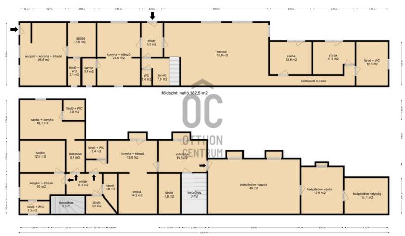 5 külön bejáratú lakás egy családi házban.Ez a kiváló állapotú, átépített, teljes körűen felújított családi ház, tökéletes választás lehet mindazok számára, akik kényelmes és tágas otthonra vágynak, vagy akár befektetési céllal keresnek ingatlant.A ház egy 1115 m2-es telken helyezkedik el, nettó 403 m2-es alapterülettel rendelkezik, amely nyolc szobát és öt fürdőszobát foglal magában, így ideális lehet nagyobb családok számára, vagy akár üzleti célra, vendégház üzemeltetésére, kiadásra.Mind az öt külön bejáratú lakrész önállóan is funkcionál.Kondenzációs gáz cirkó kazán biztosítja a fűtést, amelyből tartalék készülék is fel lett szerelve, a meleg víz ellátást pedig 3 db villany bojler végzi.Az energiatakarékos üzemeltetést 5 kW-os napelem rendszer biztosítja, amely 10 kW-os fejlesztés alatt van, hibrid üzemmódban.Az emeleten radiátoros, míg a földszinten padlófűtés és radiátoros hőleadás van.Az összes nyílászáró műanyag szerkezetű.A ház egészében klíma berendezések gondoskodnak a megfelelő hőmérsékletről.A földszinti, utca fronton kialakított lakás 38 m2-es, egy nappali + konyha + étkező, szoba és fürdőszoba + WC helyiségekből áll.Ezen a szinten egy további nagy méretű lakás található, amely 144 m2-es, tágas nappalival, 2 szobával, fürdőszobával, 2 db WC-vel, konyha + étkezővel, kamrával, tárolóval.Az utcafronti lépcsőházból megközelíthető emeleten 3 db önálló bejáratú lakrész került megépítésre, 26, 27,6 és 34,2 m2-es nettó méretekkel.Mindegyikben szoba, konyha + étkező, fürdő + WC helyiségek lettek kialakítva.A ház déli oldalán kis méretű erkélyekre lehet kijutni. A földszinten pedig egy szintén déli tájolású terasz biztosítja a lakók komfortját.Az udvarban 4 db garázs épült, de a parkolás a ház előtt is megoldható.A felső 3 db lakás bútorozottan, az alsó szint üresen kerül átadásra a leendő tulajdonosnak.Az utcafronti tető tisztítását és a homlokzat festését a tulajdonos elvégzi.A környék rendkívül kedvező adottságokkal bír: a belváros közelsége miatt minden fontosabb szolgáltatás, mint például boltok, éttermek és iskolák könnyedén elérhető.A tömegközlekedési lehetőségek is kiválóak.Az autós közlekedés szempontjából is ideális, hiszen a főbb közlekedési útvonalak, valamint a gyorsforgalmi utak könnyen megközelíthetők.A környék biztonságos és csendes, amely lehetőséget biztosít a nyugodt mindennapok eltöltésére, miközben a város pezsgése is karnyújtásnyira van.Ez az ingatlan nemcsak egy otthon, hanem egy lehetőség is, hogy egy értékes ingatlan birtokosa legyen, amely hosszú távon megtérülő befektetést is jelenthet.Bármilyen kérdés esetén szívesen állok rendelkezésére, hogy segítsek Önnek megtalálni álmai otthonát vagy befektetését.Az ingatlan piaca folyamatosan változik, ezért érdemes mihamarabb lépni, hogy ne maradjon le erről a páratlan lehetőségről.Kérem, ne habozzon kapcsolatba lépni velem, hogy további részleteket oszthassak meg Önnel, és lehetőséget biztosíthassak az ingatlan megtekintésére.Irodánk teljes körű szolgáltatást nyújt kereső ügyfeleinek.Szakszerű tanácsadással, ingyenes CSOK és hitelügyintézéssel, energetikai tanúsítvány elkészítésével és kedvező díjszabású ügyvéddel nyújtunk segítséget!