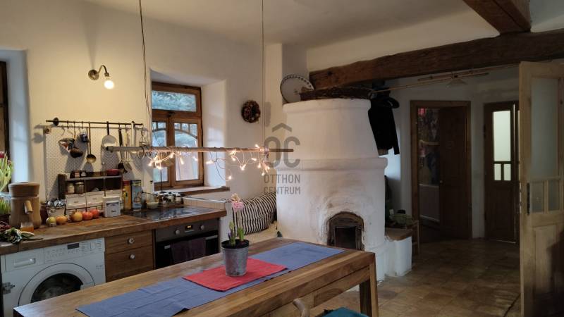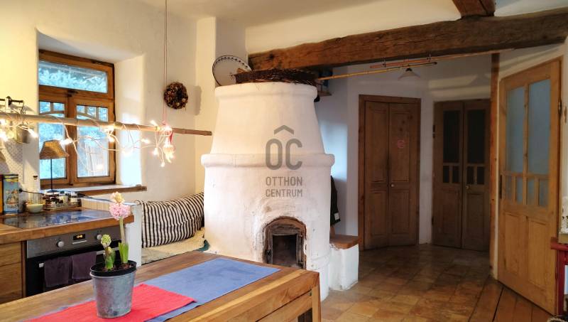 Vágyik egy helyre, ahol a reggeli kávé mellé templomtoronyra néző panoráma és erdőszéli csend jár? Orfű belterületén, egy hatalmas, közel 6000 m²-es dupla telken várja új gazdáját ez a különleges, autentikus parasztház.Hatalmas tér, végtelen lehetőség: A két helyrajzi számon fekvő, összesen 5956 m²-es terület valójában 2-3 építési portányi helyet kínál – ideális családi rezidenciának, vendégháznak vagy befektetésnek. Csodás panorámát nyújt Orfű községre, a templomtoronyra, illetve a környező hegyoldalakra. A telek egyik vége erdővel határos.A szép, tornácos ház helyi védettség alatt áll, nettó alapterülete 97 m2, amely áll előtérből, nagy konyha-étkező-nappali helyiségből (26 m2), nagyszobából, amely külön bejáratú is lehet, saját fürdő+wc-vel, kuckós kemencével, 2 félszobából, és egy kisebb szobából, valamint még egy fürdő+wc helyiségből. A fürdők két éve lettek átalakítva. A házhoz tartozik egy kívülről megközelíthető 15 m2-es pince, illetve egy melléképület, fészer, amelynek a megerősítése szükséges.A ház modernizálása 2008-ban történt, pl. a víz-, és villanyvezetékek cseréje, bekerültek a látszó fagerendák, kialakították a vízelvezetést a ház körül. Akkor készült el a két búbos kemence, amelyek közül a nappaliban lévő vízteres kialakítású, erről működik keringetős rendszerrel a radiátoros központi fűtés. A másik a nagyszobában van, az előtér felől fűthető, a szecessziós cserépkályhán keresztül. (Tipp: Ez a nagyszoba leválasztható a lakótér többi részétől, külön apartmanként funkcionálhat önálló utcai bejárattal.) A ház egyedi gyártású külső-belső nyílászárókat kapott, a hidegburkolat padlástégla, a fapadló pedig egyedi, asztalos által készített, de felújításra szorul. A födém-, és tetőszerkezet még eredeti állapotában van.Több, mint egy ingatlan: Életérzés.Ez a porta nem csak falakból áll – erős kisugárzása, békéje azonnal magával ragadja az embert. Itt az erdő a szomszéd, a kilátás pedig minden nap más arcát mutatja.Az ingatlan per- és tehermentes, azonnal birtokba vehető.Jöjjön el, érezzen rá a hangulatára, és legyen Ön is büszke orfűi lakos!Kérem, tekintse meg a tájékoztató jellegű alaprajzot!Tájékoztatásért hívjon nyugodtan!