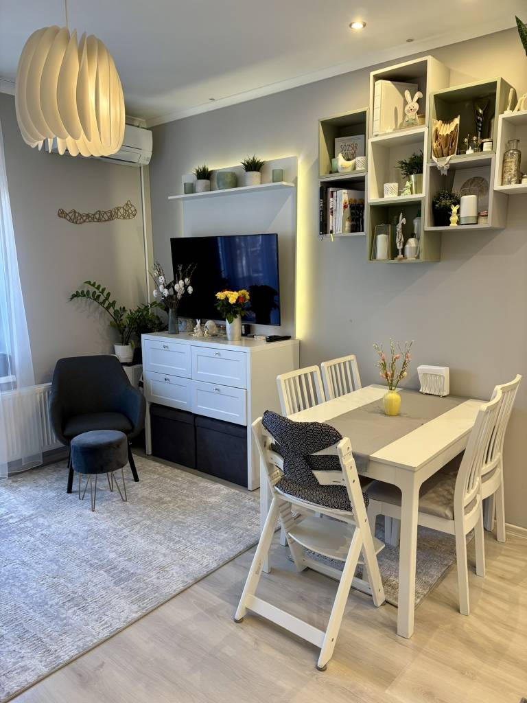 CSAK NÁLUNK – FELÚJÍTOTT, ERKÉLYES ÉKSZERDOBOZ LAKÁS GARÁZZSAL* ÉS TÁROLÓVAL* A PROMONTOR UTCÁBANBudafok kedvelt részén, a Promontor utcában kínálunk megvételre egy felújított, erkélyes, barátságos hangulatú lakást, amely ideális választás lehet első otthonnak, fiatal pároknak vagy akár befektetésnek is.A lakás egy rendezett, téglaépítésű társasház első emeletén található. A ház kétszintes, ebben az épületrészben mindössze 10 lakás található, így nyugodt, családias lakókörnyezet jellemzi.A LAKÁS ELRENDEZÉSEA lakásba belépve egy előszobába érkezünk. Innen nyílik a lakás központi tere, a világos amerikai konyhás nappali, amely a lakás igazi közösségi tere.A nappaliból egy erkélyre léphetünk ki, amely zöld, kertre néző kilátást biztosít.A lakás további helyiségei:világos gyerekszoba (félszoba) nagy ablakokkalkülön WC az előszobából nyílvaa nappaliból nyíló kis közlekedő, amelyből nyílikegy hálószoba, ahol egy félig elszeparált home office sarok is kialakításra kerültvalamint egy kádas fürdőszobaAz elrendezés praktikus és jól használható, a lakás terei világosak és otthonosak.MŰSZAKI ÁLLAPOTAz ingatlan felújított, újszerű állapotú, azonnal költözhető.Felújítások:2015 – műszaki felújítás2020 – esztétikai felújításTovábbi jellemzők:műanyag nyílászárókMika gázkazános fűtéskarbantartott, szép állapotú lakásTÁRSASHÁZA társasház rendezett és folyamatosan karbantartott, a lépcsőház néhány éve felújításra került.A közös költség kb. 26 000 Ft, amely korlátlan vízfogyasztást is tartalmaz, valamint fedezi a ház karbantartását és a felújítási alapot.A KERT ÉS KÖRNYEZETA lakás egyik nagy előnye a tágas, zöld belső kert, amelyet a lakók közösen használhatnak.A kertben található:gyerekjátszótérsütögetőhelyteregetési lehetőségvalamint sok nagy, árnyékot adó faEz a zöld terület nyugodt, barátságos környezetet biztosít a lakók számára.Az udvarban találhatóak a garázsok is.*GARÁZS ÉS TÁROLÓAz ingatlanhoz tartozik:egy fedett, zárható garázs (25 m2) az udvarban, amely KÖTELEZŐEN megvásárolandó 6 millió Ft-értaz épület alagsorában egy nagy belmagasságú tároló (~ 6m2), amely KÖTELEZŐEN megvásárolandó 4 millió Ft-értKÖZLEKEDÉSNéhány perc alatt elérhető a Budafok-Háros vasútmegálló, ahonnan a vonatokkal gyorsan megközelíthető Kelenföld és a Déli pályaudvar.A közelben található a 133E gyorsbusz, amely közvetlen kapcsolatot biztosít többek között Kelenföld és a Keleti pályaudvar irányába.A környéken további buszjáratok is elérhetők.BEVÁSÁRLÁSA közelben Aldi, Lidl, Tesco és Spar is megtalálható, valamint több kisebb üzlet és szolgáltatás, illetve a CAMPONA.INTÉZMÉNYEKA környéken óvoda, bölcsőde és iskola is elérhető, így családosok számára is kényelmes választás.Ez a lakás ideális választás lehet azok számára, akik egy felújított, barátságos hangulatú otthont keresnek zöld környezetben, ugyanakkor fontos számukra a jó közlekedés és infrastruktúra.Első lakásnak, fiatal pároknak vagy befektetésnek is kiváló lehetőség.Az ingatlan kizárólag irodánk kínálatában elérhető.A hirdetés tájékoztató jellegű.További információért és megtekintéssel kapcsolatban várom megkeresését.