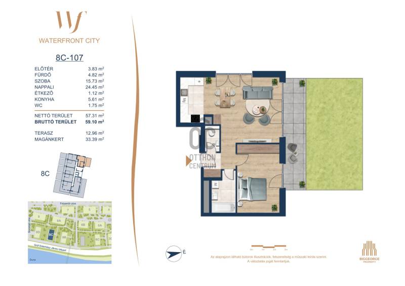 Projekt bemutatásaA projektrőlA Waterfront City egy új, modern városnegyed a 3. kerületben, ahol a természet közelsége és a városi kényelem tökéletes egyensúlyban van. A Duna-part közvetlen szomszédságában elhelyezkedő fejlesztés különleges atmoszférát kínál: a sétányt új épületek határolják, üzletekkel, kávézókkal és szolgáltatásokkal, amelyek élhető közösségi teret teremtenek.A 13 emeletes lakóépületből lenyűgöző örökpanoráma nyílik a budai hegyekre és a folyóra, a tágas teraszok pedig ideálisak a pihenéshez vagy a baráti összejövetelekhez. A zöldtetők, parkosított terek és fenntartható megoldások – mint az energiatakarékos rendszerek és okos otthon funkciók – mind hozzájárulnak a modern, környezettudatos életstílushoz.Látogass el értékesítési irodánkba, és tekintsd meg a városnegyed makettjét személyesen! Ismerd meg, milyen lesz az élet Budapest egyik legizgalmasabb új fejlesztésében!Óbuda szívébenKépzeld el, ahogy egy napsütéses délelőttön Óbuda szívében sétálsz, a Duna közelsége frissítően hat rád, miközben a Folyamőr utca, a Miklós tér és a Bogdáni út által határolt, öt hektáros területre érsz. A levegőben ott van a város történelme, mégis minden részletében a jövő hívogat.A 50 000 négyzetméteres területen egy hangulatos sétány vezet végig, amely egyenesen az óbudai Fő térre visz – mindössze 600 méterre. Ez a sétány nem csupán összeköt, hanem élményt nyújt: a Kolosy térről induló Óbudai Promenád részeként a város egyik legélhetőbb, legpezsgőbb szakaszán haladsz végig. És ha biciklivel érkeznél? A nemzetközi kerékpárút is itt halad el, Szentendre felé vezetve.Az 5. ütemben épülő 149 lakás mindegyike egyedi hangulatot kínál. Ahogy belépsz egy-egy otthonba, a hatalmas üvegfelületeken át beáradó fény és a tágas, szellős terek azonnal magukkal ragadnak. A kilátás? A Kaszap István park zöldje nyújt békét, míg a felsőbb emeletekről a Budai-hegység örökpanorámája tárul eléd – minden nap egy új festmény az ablakodban.A 6. ütemben 316 modern lakás épül, tágas teraszokkal és lenyűgöző kilátással a Dunára és a budai hegyekre. A lakók kényelmét őrszolgálat, kamerarendszer, mélygarázs, vendéglátóhelyek, belső park, játszótér és E-autó töltők szolgálják. Ez a projekt utolsó üteme, amely még közvetlen Duna-parti kapcsolattal rendelkezik.