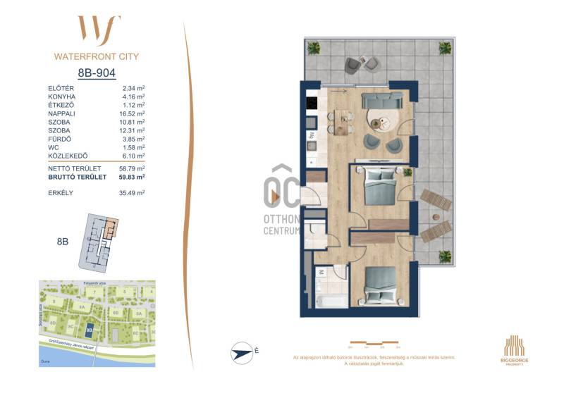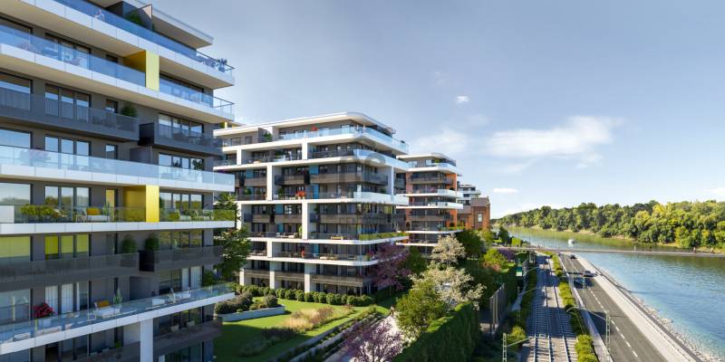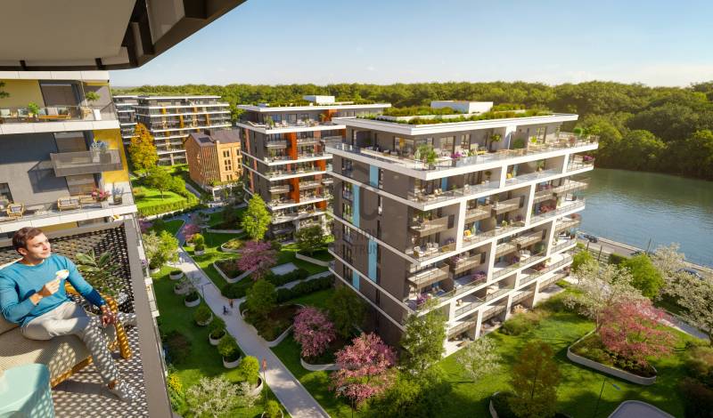 Projekt bemutatásaA projektrőlA Waterfront City egy új, modern városnegyed a 3. kerületben, ahol a természet közelsége és a városi kényelem tökéletes egyensúlyban van. A Duna-part közvetlen szomszédságában elhelyezkedő fejlesztés különleges atmoszférát kínál: a sétányt új épületek határolják, üzletekkel, kávézókkal és szolgáltatásokkal, amelyek élhető közösségi teret teremtenek.A 13 emeletes lakóépületből lenyűgöző örökpanoráma nyílik a budai hegyekre és a folyóra, a tágas teraszok pedig ideálisak a pihenéshez vagy a baráti összejövetelekhez. A zöldtetők, parkosított terek és fenntartható megoldások – mint az energiatakarékos rendszerek és okos otthon funkciók – mind hozzájárulnak a modern, környezettudatos életstílushoz.Látogass el értékesítési irodánkba, és tekintsd meg a városnegyed makettjét személyesen! Ismerd meg, milyen lesz az élet Budapest egyik legizgalmasabb új fejlesztésében!Óbuda szívébenKépzeld el, ahogy egy napsütéses délelőttön Óbuda szívében sétálsz, a Duna közelsége frissítően hat rád, miközben a Folyamőr utca, a Miklós tér és a Bogdáni út által határolt, öt hektáros területre érsz. A levegőben ott van a város történelme, mégis minden részletében a jövő hívogat.A 50 000 négyzetméteres területen egy hangulatos sétány vezet végig, amely egyenesen az óbudai Fő térre visz – mindössze 600 méterre. Ez a sétány nem csupán összeköt, hanem élményt nyújt: a Kolosy térről induló Óbudai Promenád részeként a város egyik legélhetőbb, legpezsgőbb szakaszán haladsz végig. És ha biciklivel érkeznél? A nemzetközi kerékpárút is itt halad el, Szentendre felé vezetve.Az 5. ütemben épülő 149 lakás mindegyike egyedi hangulatot kínál. Ahogy belépsz egy-egy otthonba, a hatalmas üvegfelületeken át beáradó fény és a tágas, szellős terek azonnal magukkal ragadnak. A kilátás? A Kaszap István park zöldje nyújt békét, míg a felsőbb emeletekről a Budai-hegység örökpanorámája tárul eléd – minden nap egy új festmény az ablakodban.A 6. ütemben 316 modern lakás épül, tágas teraszokkal és lenyűgöző kilátással a Dunára és a budai hegyekre. A lakók kényelmét őrszolgálat, kamerarendszer, mélygarázs, vendéglátóhelyek, belső park, játszótér és E-autó töltők szolgálják. Ez a projekt utolsó üteme, amely még közvetlen Duna-parti kapcsolattal rendelkezik.