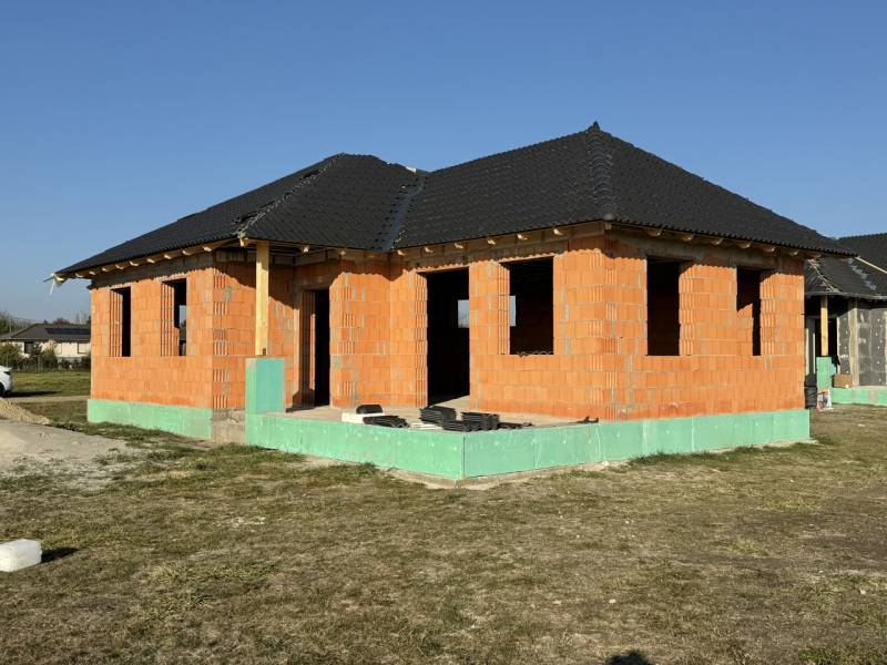 Gyöngyöshalászon a frissen parcellázott övezetben a Toldi utcával párhuzamos utcában, 800m2-es telken 4 szoba + nappalis, amerikai konyhás, nettó 96,92 m2 hasznos lakótérrel rendelkező, új építésű önálló családi ház eladó.Csok plusz elérhető!Az ingatlan 30-as Nútféderes tégla falazóelemből épül, fa födémmel.A tető héjazata antracit betoncserép lesz, a homlokzatok 15cm EPS, a padló 10cm Austrotherm AT-N100-as, a vízszintes födém 30cm Ásványgyapot szigeteléssel lesz ellátva.Hat légkamrás 3 rétegű evegekkel szerelt nyílászárók kerülnek beépítésre.A fűtést 10kw-os monoblockos hőszivattyús rendszer fogja ellátni, padlófűtéssel. A használati melegvízről hőszivattyús bojler gondoskodik.A műszaki tartalom választható az alábbi költségkereten belül:-hidegburkolat:4000.- Ft./m2-ig-melegburkolat:4000.- Ft./m2-ig-csaptelepek:25.000.- Ft./db-kád vagy zuhany: 50.000.- Ft.-beltéri ajtók:60.000.- Ft./dbElektromos kiépítés:-Konnektorok szobákban: 3 db-Konnektorok nappaliban 4db + internet és kábeltv kiállás-Konnektorok konyhában: 6db-Világítás helyiségenként 1-1 db-Kábeltévé: ElőkészítésMagasabb árú tatalom is választható a különbség finanszírozásával.Riasztó előkészítés és kapu mozgató elektronika előkészítés is készül.Kérésre szívesen küldünk komplett tervdokumentációt, műszaki leírást.A kivitelező korábban épített, már értékesített és birtokbaadott ingatlanjait komoly érdeklődés esetén szívesen megmutatjuk referenciaként. Várható átadás 2027 első negyedév.INGYENES hitel tanácsadás, CSOK Plusz ügyintézés!BANKFÜGGETLEN hitelcentrumunk az összes elérhető bank és hitelintézet ajánlatát versenyezteti az Ön kedvéért, ráadásul DÍJMENTESEN.- Egyedi, bankfiókban nem elérhető kamat- és díjkedvezmények- Hitelképesség vizsgálat- Idő, energia és pénz megtakarítás- Teljes hivatali ügyintézésAmennyiben hirdetésem felkeltette az érdeklődését vagy egyéb információra van szüksége hívjon bizalommal!