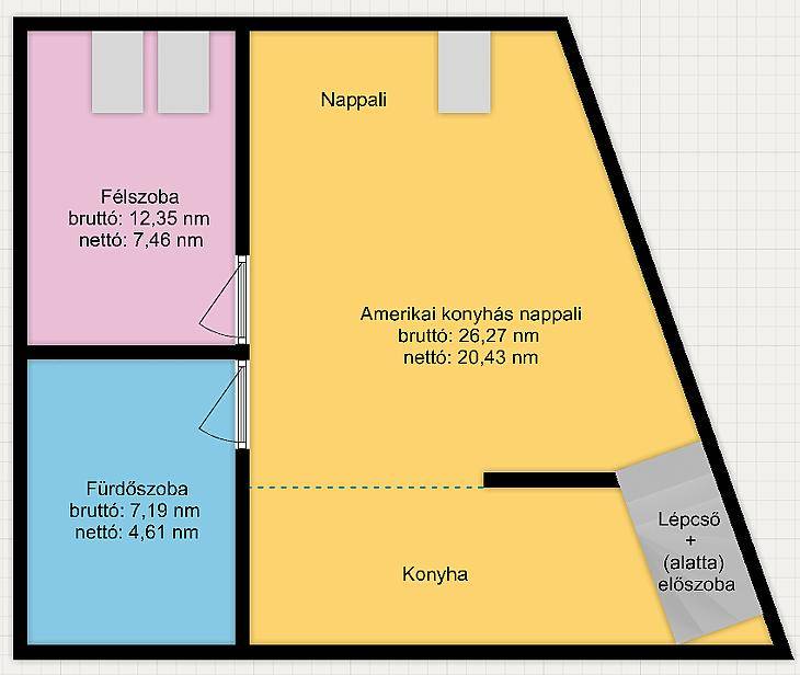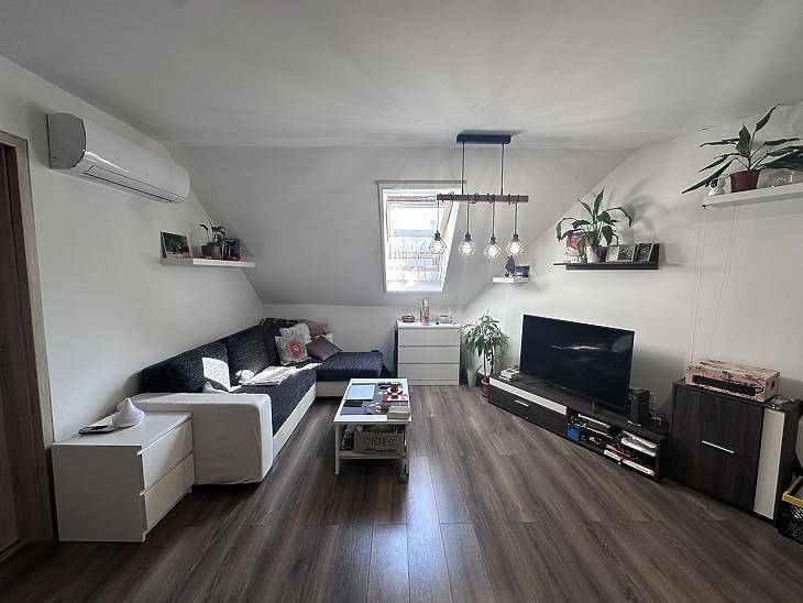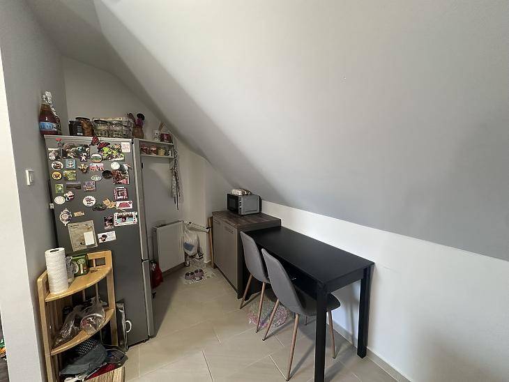 Újpesten a XIII. kerület szomszédságában, 2022-ben átadott társasházban, eladásra kínálunk egy II. emeleti, újszerű állapotú, bruttó 45 nm-es, nettó: 40 nm-es, amerikai konyhás nappali+1 félszobás kialakítású, tetőtéri téglalakás.Az ingatlan 1/1-es tulajdonban van. Átadási ideje: 90-120 nap! A lakás használati megosztással rendelkezik!A lakásban korszerű víz, gáz és villanyhálózat került kialakításra. Több ponton záródó biztonsági bejárati ajtót, modern beltéri ajtókat és sötétítővel ellátott fa keretes, velux ablakokat építettek be. A nappaliban és a szobában laminált padlót helyeztek le, a többi helyiséget járólappal burkolták. Házközponti fűtés gondoskodik az otthon melegéről, a fűtőtestek korszerű lapradiátorok. A nagyobb komfortérzet kialakításának érdekében a nappaliba egy hűtő-fűtő inverteres légkondicionáló berendezést is felszereltek. A tetőtér egy privát előszobán keresztül, lépcső segítségével közelíthető meg.Az ingatlan vételárán felül kötelező megvásárolni egy kb. 12 nm-es autóbeálló helyet a társasház udvarában, melynek ára 5.500.000.- Ft. A közelben megtalálható a 20E, 30-as, 121-es, 120-as busz, és a 12-es, 14-es villamos megállója is. Újpest központ és az M3-as metróállomás gyalog 6-8 perc alatt megközelíthető. A belváros tömegközlekedéssel és autóval egyaránt rövid időn belül elérhető.A hirdetésben szereplő adatok tájékoztató jellegűek! Egyes ingatlanjaink esetében csere és ingatlanbeszámítás is lehetséges. Továbbá ügyfeleink részére keresünk eladó ingatlant, tulajdonrészt, vagy haszonélvezeti joggal terhelt ingatlant Budapesten és az agglomerációban. A részletekről kérjük érdeklődjön telefonon.Bankfüggetlen hiteltanácsadóink az ország összes pénzintézete közül gyorsan és gördülékenyen találják meg az Önnek legmegfelelőbb konstrukciót, egyedi, személyre szabott kedvezményekkel.A KÖZVETÍTÉS VEVŐINK RÉSZÉRE DÍJMENTES!