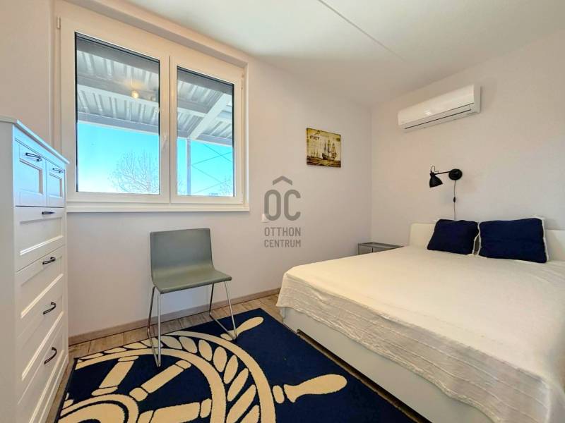Balatonszemes , vízparti nyaraló keresi új tulajdonosát.A Szemespart 1 , Balatonszemes egyik legkülönlegesebb pontján, közvetlenül a kikötő mellett, a vízparton épült meg – ott, ahol a csendes zöld környezet és a balatoni élet pezsgése tökéletes egyensúlyt alkot.A 2019- ben átadott 55 nm-es lakás a második emeleten található , Balatonra néző panorámával.Elosztása - 2 hálószoba, tágas nappali, amerikai konyha-étkező, fürdőszoba, 26 nm-es fedett teraszkapcsolattal.Az otthon melegét padlófűtés és klíma berendezés biztosítja,A hőszigetelt nyílászárók elektromos redőnnyel, szúnyoghálóval felszereltek.Modern, gépesített konyha,stílusos ,igényes burkolatok, bútorok , napfényes terek jellemzik a keleti fekvés lakást.Az akadálymentesítést üvegfalú lift biztosítja , az emeleti szintekhez.való feljutást.A földszinten elhelyezett saját, zárt 4 nm-es tároló a vételár részét képezi.Kiépített elektromos autótöltő, , áll a lakók rendelkezésére.A társasház zárt udvarában a lakáshoz ,1 db felszíni parkolóhely biztosított, ami igény szerint megvásárolható.A tulajdonos teljes berendezéssel együtt szeretné a lakást értékesíteni , ezt az irányár tartalmazza.A közös költség 26.000,-Ft, amelyben egyebekben a felújítási alap, lakásbiztosítás, lépcsőház takarítás, liftkezelés, udvar, kert takarítása és ápolása is beletartozik.Kifogástalan állapotú, modern nyaraló, mely meseszerű vízparti környezetben és panorámával várja új tulajdonosait.Télen, nyáron ideális lakhatásra, pihenéshez, feltöltődéshez, de kiváló lehetőség befektetésként is.A vízpart közvetlen közelsége, az Északi-part szemet gyönyörködtető látványa mellett, hívogatóak a hangulatos kis település minőségi éttermei, borászata, péksége, vagy cukrászdái.A felújított kerékpárutakon könnyen megközelíthető bármelyik szomszédos település, miközben számos lehetőség nyílik a kikapcsolódáshoz, hajózáshoz.Ha felkeltette az érdeklődését, hívjon bizalommal!