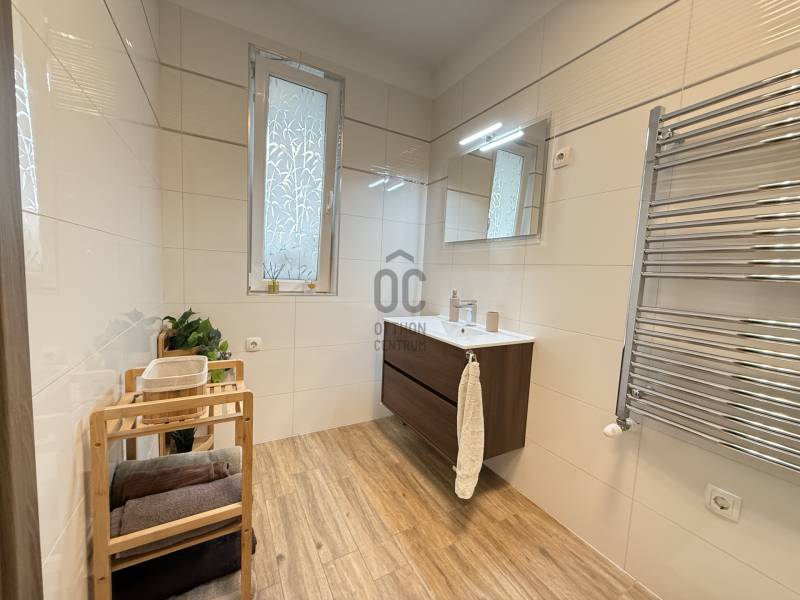 Modern, otthonos családi ikerház eladó Dunakeszin, a Malomárok Lakóparkban.Dunakeszi egyik legkedveltebb, nyugodt részén, a Malomárok Lakóparkban kínálunk megvételre egy 2018-ban épült, kiváló állapotú családi házat. Az ingatlan első tulajdonosoktól eladó.A ház bruttó 141 m², melyből 120 m² nettó lakótér, praktikus elrendezéssel, 5 szobával.Az ingatlan az ikerház másik felével kizárólag a garázsnál kapcsolódik.Földszint:•Vendégszoba / dolgozószoba•Tágas, világos amerikai konyhás nappali•Kamra•Fürdőszoba WC-velEmelet:•3 kényelmes hálószoba•Külön WC•Külön fürdőszobaMűszaki tartalom, extrák:•Gázkazános fűtés, padlófűtés és radiátorok kombinációjával•2 db hűtő-fűtő klímaberendezés•BWT vízlágyító rendszer•Minden nyílászárón alumínium redőny és szúnyogháló•Gondozott kert gyepszőnyeggel, növényekkel és automata öntözőrendszerrel•27 m²-es fedett terasz, ideális pihenéshez és a nyári grillpartykhoz•10 m²-es kerti faházKörnyezet, elhelyezkedés:•M2 és M0 autóút gyors elérhetőség•Belváros 20-25p alatt elérhető•Csendes, nyugodt lakókörnyezet•Közelben bevásárlási lehetőségek, iskola, óvoda a közelben•A Duna-part 5–10 perc sétára, kiváló kikapcsolódási lehetőségekkelA vételár tartalmazza a berendezés nagy részét a beépített bútorokon kívül is. (Játszótér, kerti sütögető stb.) Komoly szándék esetén ezek egyeztetésre kerülnek.Ez az ingatlan tökéletes választás azok számára, akik modern, jól felszerelt, gyorsan költözhető otthont keresnek Dunakeszin.