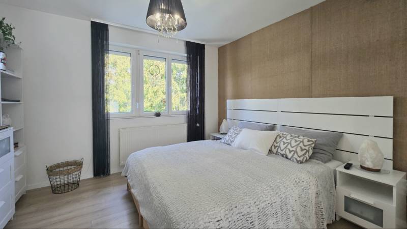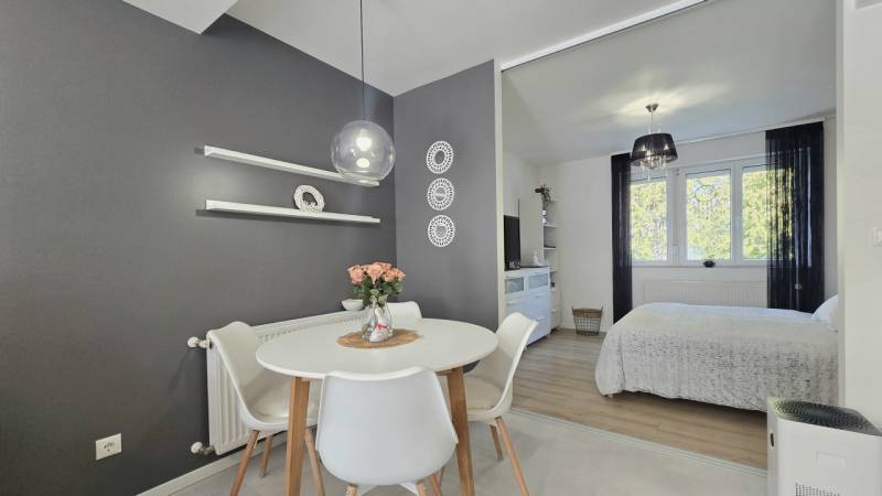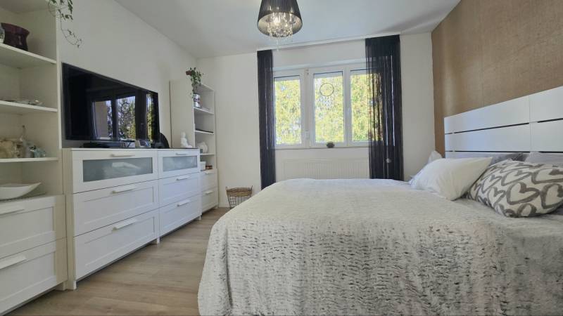 Eladóvá vált egy kiváló minőségben felújított 60 m²-es, erkélyes lakás garázzsal együtt.Zalaegerszeg két kedvelt városrészének határán, a Belváros és a Kertváros találkozásánál kínálunk megvételre egy nappali + 2 hálószobás, teljeskörűen, egyedi megoldásokkal felújított, csodaszép lakást. - Az ingatlanban megtörtént a vezetékek cseréje (víz, villany, gáz), új burkolatok és szaniterek kerültek minden helyiségben beépítésre.- A nyílászárók és a beltéri ajtók mellett a bejárati ajtó is új. Az ablakok redőnnyel, szunyoghálóval ellátottak, a nappaliban elektromos redőny van. - A konyhában modern, új, gépesített konyhabútor került beépítésre.- Fűtése egyedi gázcirkó fűtés lapradiátor hőleadókkal. Hűtése 2 klímaberendezéssel történik.- A fürdő és a wc külön található, a fürdőben nagyméretű zuhanyzó áll rendelkezésre.- Az ingatlan egy kis lakóközösségű társasház 2. emeletén található, így nemcsak világos, hanem rendkívül csendes is. - A kiváló belső szigetelésnek köszönhetően a lakás alacsony rezsiköltséggel fenntartható. - A csodaszép otthonhoz egy saját, zárható tároló és közös tároló is rendelkezésre áll a pincében.Az épület közelében megtalálható óvoda és iskola, így az ingatlan különösen praktikus családosok számára.A környéken minden fontos szolgáltatás – bevásárlási lehetőségek, gyógyszertár – valamint a kórház néhány perc sétával elérhető, emellett a buszmegálló is pár percre van.A parkolás ingyenes közvetlenül a ház körül, illetve e 16 m2-es garázs az udvarban található.A lakáshoz tartozó zárt, biztonságos garázs kötelezően megvásárolandó, melyet az ingatlan vételára már tartalmaz!Irányár: 64.500.000 FtEz a lakás ideális választás lehet mindazoknak, akik egy rövid időn belül költözhető, igényesen felújított, modern otthont keresnek kiváló elhelyezkedéssel – akár saját részre, akár befektetésként. Ne maradjon le róla, további információkért hívjon bizalommal!