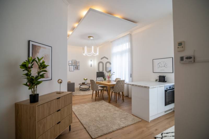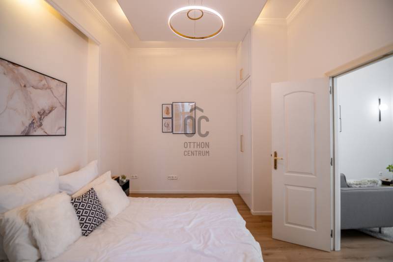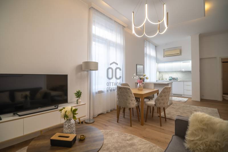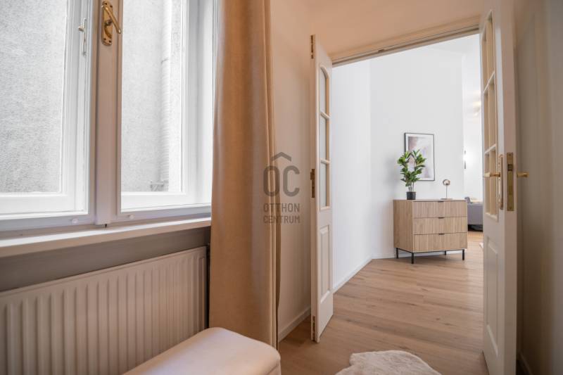 Budapest belvárosának egyik hangulatos V. kerületi sétálóutcájában, a Haris köz patinás épületében kínálok eladásra egy 57 nm-es, 2 szobás, 2. emeleti lakást. Az ingatlan egy rendezett, kis lakóközösségű társasházban található, amely zárt lépcsőházzal és lifttel rendelkezik. A lakás frissen felújított állapotú, tágas terekkel és nagy belmagassággal, így világos és különleges hangulatú otthont kínál új tulajdonosának.A LAKÁSRÓL:Az ingatlan a nagy belmagasságának köszönhetően rendkívül tágas és világos érzetet nyújt.A nappali a sétálóutcára néz, míg a hálószoba a csendes belső udvarra, így a lakás jól ötvözi a városi hangulatot és a nyugodt pihenést.A lakás frissen felújított, az ablakok extra hangszigeteléssel vannak ellátva, így a központi elhelyezkedés ellenére is csendes.A konyha teljesen gépesített, a lakásban két klímaberendezés is található, amelyek a nyári hűtést és az átmeneti időszakban a fűtést is segítik. A fűtésről cirkó gázkazán gondoskodik.A lakásban található bútorok megegyezés tárgyát képezik.A HÁZRÓL:A társasház kis lakóközösségű, rendezett, zárt lépcsőházzal rendelkezik, valamint lift is található az épületben, ami még kényelmesebbé teszi a mindennapokat.LOKÁCIÓ:Az ingatlan Budapest belvárosában, a Haris közben található, egy csendes, hangulatos sétálóutcában. A Váci utca, a belváros egyik legismertebb bevásárló- és sétálóutcája, mindössze pár perc sétára, a Haris köz párhuzamos utcájában helyezkedik el, így a lakó mindennapi bevásárlása és a városi élet könnyen elérhető. A környék rendkívül frekventált, számos étterem, kávézó, üzlet és szolgáltatás található a közelben. A tömegközlekedés kiváló, a környéken busz- és villamosjáratok, valamint a metróvonalak könnyen elérhetők, így a város bármely pontja gyorsan megközelíthető. A lakás ideális azok számára, akik szeretnének közel lenni a belváros nyüzsgéséhez, ugyanakkor csendes és nyugodt otthont keresnek.AJÁNLOM:Ideális választás lehet saját otthonnak, városi lakásnak vagy befektetésnek egyaránt.További információért és megtekintés egyeztetéséhez keressen bizalommal!Egyedi igényekre szabott lakáshitelekkel állunk rendelkezésére.Bankfüggetlen Hitelcentrumunk az országban elérhető összes bank és hitelintézet ajánlatát versenyezteti az Ön számára díjmentesen.Munkatársaink nagy szakmai tapasztalattal, teljes körű CSOK PLUSZ és OTTHON START PROGRAM ügyintézéssel várják Önt előre egyeztetett időpontban akár a normál munkaidő után is.