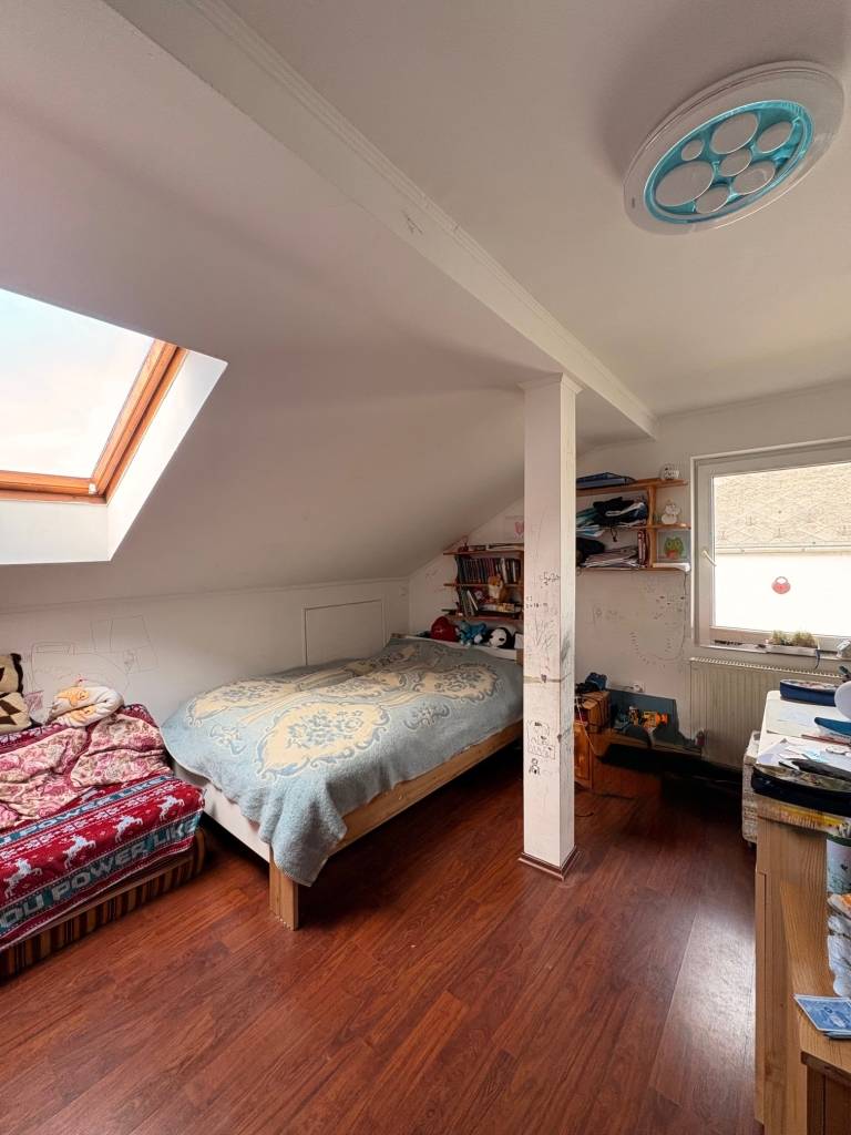 Eladó tetőtér-beépítéses családi ház Érden, zsákutca végén!Érd nyugodt, családbarát részén kínálunk megvételre egy kétszintes családi házat, amely ideális választás lehet nagyobb család számára is.Az ingatlan praktikus elrendezésű: tágas nappali, 3 hálószoba és egy félszoba, ami a tetőtérben konyhalehetőséget kínál, mivel a kiállások be lettek tervezve/kialakítva, valamint 3 fürdőszoba biztosít kényelmes életteret a mindennapokhoz. A ház egy zsákutca végén található, így a forgalom minimális, a környezet nyugodt és biztonságos.A nagy méretű telek számos lehetőséget kínál – kertészkedésre, pihenésre vagy akár további fejlesztésekre is.Az épület műszaki állapota kedvező:10 cm külső szigetelésMegerősített tetőszerkezet, új cserépfedésPadlófűtés a földszintenAlternatív fűtési módFöldszinten van olyan fal, ami vályogtéglából készült, fal vastagság 50 cmEz az otthon ideális választás lehet azoknak, akik kertvárosi környezetben, mégis jól megközelíthető helyen keresnek tágas családi házat.További információért vagy megtekintés egyeztetéséhez keressen bizalommal!