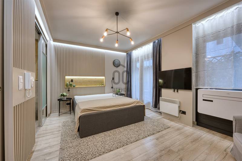 Kiadó egy kivételes, luxus garzonlakás Budapest belvárosában, a Belső VI. kerületben, egy exkluzív, medencés társasházban a nyüzsgő Király utcában. Ez a modern, 2018-ban épült épület a legkorszerűbb technológiákat és luxus szolgáltatásokat kínálja. A lakók kényelmét 24 órás portaszolgálat, tetőterasz, medence, fitnesz és szauna, valamint a földszinten számos üzlet és étterem szolgálja.A lakás földszinti, 27 négyzetméteres alapterülettel és egy 4 négyzetméteres terasszal rendelkezik.Kiváló állapotú, AA energetikai besorolású, így nemcsak környezetbarát, hanem gazdaságos is.A lakás teljesen felszerelt, gépesített, benne hűtő, fagyasztó, villany főzőlap, villanysütő, mosogatógép, kivezetett páraelszívó stb.Az épület új modern alapanyagokból, kortárs technikával, hőszigeteléssel ellátott homlokzatú. Az új ház külseje nem véletlenül idézi a klasszicizmus korszakát: sokat megélt és sokat emlegetett elődjét ugyanis a Pest arculatának formálásában jelentős szerepet játsztó Hild József tervezte bő 170 évvel ezelőtt. Az 1844-ben átadott épületnek még a pezsgő életéről ismert Király utcában is különleges kultúrtörténeti jelentősége van, hiszen itt nyílt meg 1869-ben Gundel János első étterme. Az épület homlokzat mögötti terei teljesen kortárs stílusúra tervezték. A K40 apartmanház 106 különböző méretű (28–95 négyzetméter alapterületű) luxuslakás került kialakításra.Amennyiben felkeltette érdeklődését az ingatlan, esetleg szeretné megtekinteni, kérem hívjon bizalommal!