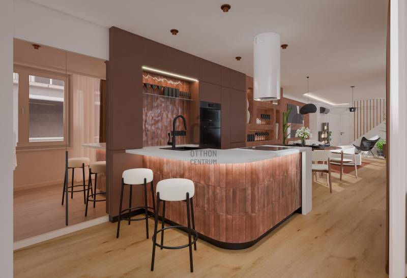 TETŐTERASZ A VÁROS FELETTLélegzetelállító tetőteraszos luxus penthouse Budapest V. kerületének szívében – kétszintes, exkluzív élettér a Veres Pálné utcában a Váci utca mellett.Budapest egyik legelegánsabb és leghangulatosabb utcájában kínálunk bérbeadásra egy nappali + 2 hálószobás, 2 fürdőszobás, gépesített konyhával rendelkező, teljeskörűen felújított és bútorozott tetőtér ráépítéses luxusingatlant.Miért tökéletes választás? Ez a belső kétszintes luxusotthon ritka lehetőség a belváros szívében: díjnyertes belsőépítész cég által átgondolt tereivel és privát wellness élményével tökéletes egyensúlyt kínál a városi élet pezsgése és a nyugodt otthoni pihenés között, ideális választás akár egyedülállóknak, családoknak vagy diplomáciai képviseletnek.LAKÁSRÓLAlsó szintA bejárati szinten egy tágas, közel 50 nm-es világos nappali–konyha–étkező tér található, ahol a nagy üvegfelületek természetes fénnyel töltik meg a lakást. Ezen a szinten kapott helyet egy külön nyíló hálószoba, egy kádas fürdőszoba, valamint egy praktikus háztartási helyiség is.Felső szint:A felső szinten kapott helyet a fő hálószoba, amely prémium berendezésével valódi lakosztály hangulatot teremt. Ezen a szinten található egy zuhanyzós fürdőszoba és egy tágas közlekedő is. A szint igazi különlegessége a 36 m²-es privát, panorámás terasz, ahonnan lenyűgöző kilátás nyílik a Gellért-hegyre és a Szabadság-szoborra. Ideális helyszín baráti összejövetelekhez, családi eseményekhez vagy akár reprezentatív fogadásokhoz.A lakás teljes körűen felújított, minden részletében prémium minőségű kivitelezéssel és modern építészeti megoldásokkal. Igényes bútorozottság és tágas tárolóhelyek teszik még kényelmesebbé az itt élést.ÉPÜLETRŐLAz épület a 19. század végének hangulatát idézi, klasszikus belvárosi polgári stílusjegyekkel. Az épület az elmúlt években teljes körű felújításon esett át, valamint ráépítéssel új szintekkel bővült ahol a penthouse is található. A korszerűsítés részeként üveges panorámalift is beépítésre került, így az épület nemcsak esztétikailag, hanem kényelmi szempontból is modernizálódott.A közös terek rendezettek, a lépcsőház tiszta és gondozott. A társasház stabil anyagi háttérrel működik, a közös költség mindössze 36.000 Ft havonta, amely a szokásos kiadásokat tartalmazza. A lakóközösség nyugodt és együttműködő.KÖRNYÉK ÉS KÖZLEKEDÉSA Veres Pálné utca Budapest történelmi belvárosának egyik csendes, mégis rendkívül központi elhelyezkedésű utcája. A közelben található a hangulatos Károlyi-kert, a Váci utca, a Fővám Téri piac, számos étterem, kávézó és szolgáltatás, valamint néhány perc sétára elérhető a Duna-part is.Közlekedési szempontból a lokáció kiváló: a közeli Ferenciek tere és Kálvin tér metró- és busz kapcsolatai gyors elérést biztosítunk a város bármely pontja felé. A környék gyalogosan is jól bejárható, a belváros kulturális és egyetemi központjai – például az Eötvös Loránd Tudományegyetem – rövid sétával elérhetők.Technikai információk:-Teljeskörűen felújított állapot-Első lakóját várja, Frissen berendezett, modern kialakítás-Modern gépészeti megoldások-Designer bútorok és olasz prémium burkolatok-Jacuzzis tetőteraszBérleti feltételek:Bérleti díj: 3.500 EUR / hó, azaz kb. 1.400.000 Ft / hóKaució: 2 havi kaució + 1 havi bérleti díjAmennyiben személyesen is megtapasztalnád az otthon atmoszféráját és a fantasztikus panorámás tetőterasz élményét, keress bizalommal, és egyeztessünk időpontot a megtekintésre!