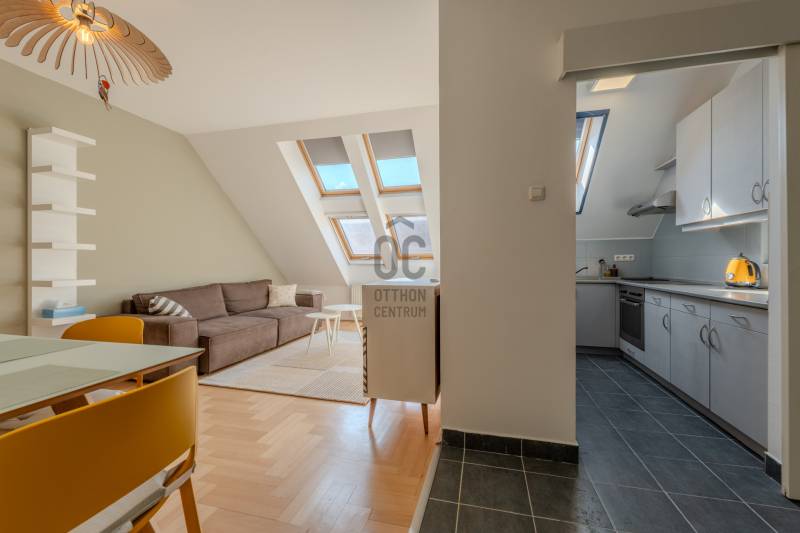 Élj a pezsgés központjában! – Design lakás a Gozsdu Udvarnál Eladó egy világos, nettó 65 nm-es, 3 szobás otthon Budapest legmenőbb negyedében, a VII. kerületi Holló utcában! Ez az ingatlan nem csupán egy lakás, hanem egy belépő a főváros lüktető szívébe.Az ingatlanról: Stílus és kényelemA lakás a társasház 5. emeletén (tetőtér) található, így a város felett, mégis a sűrűjében élhetsz.Elrendezés: Tágas, amerikai konyhás nappali + 2 külön nyíló szoba.Állapot: Jó állapotú, minimalista design, ami azonnal költözhető.Extrák: Klíma a nyári hőség ellen, házközponti fűtés a téli estékre.Biztonság: 24 órás portaszolgálat és biztonsági ajtó vigyáz rád.Akadálymentes: Modern lift és könnyű megközelíthetőség.Ahol a világ találkozik: Belső-ErzsébetvárosHa ide költözöl, felejtsd el az autót! A környék a főváros turisztikai és kulturális epicentruma.Buli negyed & Gozsdu: A lakás a híres Gozsdu udvar közvetlen szomszédságában található. A legjobb romkocsmák, speciality kávézók és street food helyek szó szerint a lábaid előtt hevernek.Infrastruktúra: Pár perc sétára minden megtalálható: élelmiszerüzletek, drogériák, edzőtermek és galériák.Közlekedés: Kitűnő csomópont! Az M1, M2, M3 metróvonalak (Deák Ferenc tér), valamint a 47-49-es villamosok és éjszakai járatok pillanatok alatt elérhetőek. Bárhová is mész a városban, innen te érsz oda a leggyorsabban.Miért válaszd ezt a lakást?Ez az otthon tökéletes választás, ha imádod a városi nyüzsgést, de a lakásodba belépve egy csendes, világos és biztonságos menedékre vágysz. Befektetésnek is kiváló, hiszen a környék idegenforgalmi értéke miatt a lakás kiadhatósága kiemelkedő.Ne maradj le róla! A belváros ezen része sosem megy ki a divatból.Szeretnéd élőben is látni?Kérdésed van, vagy megtekintenéd az ingatlant? Keress bizalommal, és mutatom az utat az új életedhez!