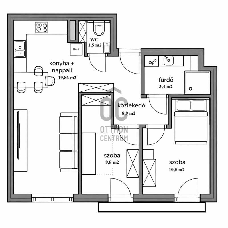 A XIII. kerületben, a Teve utcában, kiváló közlekedéssel, mégis nyugodt, rendezett környezetben, a SIDI ANGEL lakóparkban kínálunk eladásra egy praktikus elrendezésű, 54 m²-es, újszerű állapotú 3 szobás, 6. emeleti lakást.Jellemzők:*2016-os építésű, modern társasház*korszerű, igényes burkolatok*gépesített konyha (sütő, hűtő, főzőlap, mosogatógép és mosógép)*a teljes bútorzat a vételár része, így a lakás akár azonnal birtokba vehető és költözhető*a teraszajtókon pliszé szúnyogháló találhatóMűszaki felszereltség:*Fűtés: házközponti fűtés egyedi méréssel, kedvező fenntartási költségekkel*Hűtésről: 2 db inverteres hűtő–fűtő split klíma gondoskodikA lakás elosztása kiemelkedően praktikus:*amerikai konyhás nappali - 19,88 m2*hálószoba - 10,5 m2*hálószoba - 9,8 m2*fürdőszoba - 3,4 m2*külön WC - 1,5 m2*előszoba - 8,9 m2*a 2 hálószobából nyíió franciaerkéllyelA lakáshoz tartozik egy tágas (15,53 m²) teremgarázs hely, amely könnyen parkolható, és rendkívül jól pakolható. A parkoló mellett közvetlenül található egy használaton kívüli „menekülési útvonal”, amely extra helyet biztosít, így nagyobb tárgyak (pl. babakocsi, kerékpár) oldalról történő pakolása is kényelmesen megoldható.A közös költség: 25.118 Ft/hó.A lakás tehermentes és azonnal költözhető, így ideális választás saját részre vagy akár befektetésnek is, mivel könnyen kiadható magas hozammal.A társasház rendezett, újszerű és akadálymentesített.Környék:*Angyalföld a XIII. kerület dinamikusan fejlődő városrésze, amely modern lakóépületeivel, parkjaival és szolgáltatásaival egyre népszerűbb lakóhely Budapesten.*A kiváló közlekedési kapcsolatok, bevásárlási lehetőségek és közeli irodaházak miatt különösen vonzó a fiatal, aktív életmódot folytatók számára.Közlekedés autóval*Az ingatlan a Váci út és az Árpád híd közelében található, így a belváros és a budai oldal gyorsan elérhető.*A Hungária körút és az Árpád híd néhány perc alatt megközelíthető, jó kapcsolatot biztosítva a város fő közlekedési útvonalaihoz.*Az M3 autópálya bevezető szakasza könnyen elérhető, így az agglomeráció irányába is gyors a kijutás.Közlekedés tömegközlekedéssel*legközelebbi buszmegálló (15, 115 busz) kb. 150 méterre található, amely közvetlen kapcsolatot biztosít többek között a Nyugati pályaudvar irányába.*A Göncz Árpád városközpont közlekedési csomópont kb. 500–600 méterre található, ahol az M3 metró, valamint több buszjárat (32, 34, 106 stb.) érhető el.*Az 1-es villamos megállója szintén a Göncz Árpád városközpontnál található, kb. 500 méterre, amely gyors körirányú kapcsolatot biztosít a város számos pontjára.Bevásárlási lehetőségek a közelben*Westend City Center – kb. 2 km*Lehel Csarnok – kb. 1,7 km*A Váci úti irodafolyosó mentén több élelmiszerüzlet (SPAR, Lidl, Tesco Express) 300–800 méteren belül elérhető.Óvodák és bölcsődék*Teve utcai Bölcsőde – kb. 200 m*Vizafogó Óvoda – kb. 600 m*Pitypang Óvoda – kb. 700 mIskolák*Herman Ottó Általános Iskola – kb. 900 m*Berzsenyi Dániel Gimnázium – kb. 1,3 km*Budapesti Gazdasági Egyetem – kb. 1,5–2 km (több kar a közelben)A strandot kedvelőknek a Dagály fürdő 1,2 km-re található.A lakás ára: 104.990.000 FtA garázs ára: 9.990.000 Ft (a lakással együtt vásárolandó)Egyedi igényekre szabott lakáshitelekkel állunk rendelkezésére. Bankfüggetlen hitelcentrumunk az országban elérhető összes bank és hitelintézet ajánlatát versenyezteti az Ön számára díjmentesen. Munkatársaink nagy szakmai tapasztalattal várják Önt az előre egyeztetett időpontban akár a normál munkaidő után is.Bővebb információért és a megtekintéssel kapcsolatban hívjon bizalommal!
