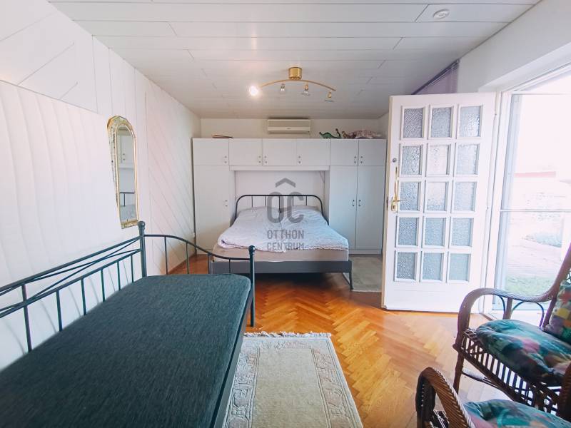 Ábrahámhegy egykori kikötőépülete egy kő falazatú kis villaépület volt a századfordulón. A régi térképek tanulsága szerint ezen épülettel szemben indult azon kijáró, amelyről a vízi szállítást akkortájt megoldották.Ezen épület ma már egészen más arcát mutatja, bár a szemfülesek megtalálják benne azon részleteket, amelyek tanúskodnak az akkori építőmesterségről, a telek pedig mit sem változott azóta, most is a Balaton partjáig fut, saját stéggel a végén.A vastag falazaton belül ma már egy teljesen felújított, modern, tágas és napfényes lakóházat találunk, amelynek a belmagassága 290 cm! A lakóépület hasznos alapterülete 56 nm, amelyben tágas nappali, napfényes étkező és két nagy hálószoba kapott helyet a konyha és a fürdőszoba mellett.A bejárat előtt kényelmes, árnyas, fedett, 22 nm-es teraszt alakítottak ki, ahol egy egész család és a vendégsereg elfér.A telken egy konyhával, fürdőszobával felszerelt vendégház is van, valamint háztartási helyiség és egy tágas, mindent elnyelő tároló a csónakoknak, kajakoknak, és minden egyéb vízi és szárazföldi felszerelésnek.A telek egy almafás gyümölcsössel folytatódik, majd a nádas felé még egy zárható vízieszköz-tároló található. A saját, kizárólagos használatú 12 nm-es engedélyes stég végül a nyílt Balaton felé enged szabad utat. A terület 1462 nm-es, Üh-01-es besorolás alá esik, így 15%-ban beépíthető!A mai kívánalmaknak megfelelően az ingatlan technikai jellemzői is garantálnak minden kényelmet:Garázsépület, kövezett bejáró, távirányítós tolókapu, központi kódos zárrendszer, öntözőberendezés a teljes kertben, teraszlezáró rolórendszer, központi gázfűtés, hűtő-fűtő klímák minden helyiségben, spotlámpás világítórendszer, felszerelt konyha, mosó- és szárítógép, hőszigetelt falak, 3 rétegű thermo nyílászárók, mindez szinte új állapotban!Az ingatlan egyedülálló a maga nemében! Horgászoknak, horgásztatóknak, horgászegyesületeknek és Balatonimádóknak kihagyhatatlan lehetőség!