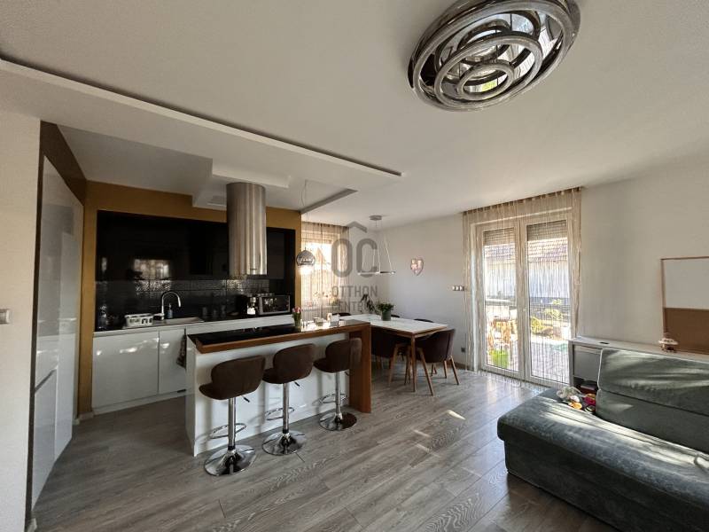 Ingatlan jellemzői:- nettó 83 nm- tégla falazat, külső hőszigetelés- 2017-ben került átadásra, első tulajdonosok lakják- földszinten: amerikai konyha+ nappali, fürdőszoba és wc került kialakításra- nappaliban lévő tölgyfa bútor a vételár része- emeleten : 3 külön nyíló hálószoba és fürdőszoba ( Hansgrohe csaptelepek és Geberit falba épített gépészet)- kondenzációs gázkazánnal történik az ingatlan fűtése , földszinten padlófűtéssel, az emeleten radiátorral- minden szoba hűtő-fűtő klímával felszerelt- lakáshoz tartozik egy 200nm-es saját használatú zárt udvar- udvaron épített játszótér csúszdával, mászókával, hintával, homokozóval , illetve egy szerszámtároló faház, mellette fedett pihenő (gazebo)- parkosított udvar öntözőrendszerrel ellátott- nappalihoz közvetlenül csatlakozik egy 25 nm-es terasz napvitorlával- lakáshoz tartozik egy garázs és egy beálló a közös udvarbanSzeretne a belváros közelében élni igényes otthonban, keressen bizalommal! Irodánkban teljes körű ügyintézéssel várjuk bankfüggetlen tanácsadónknál. A hirdetésben szereplő információk a megbízótól kapott adatok alapján készültek, pontosságukért felelősséget nem vállalunk!