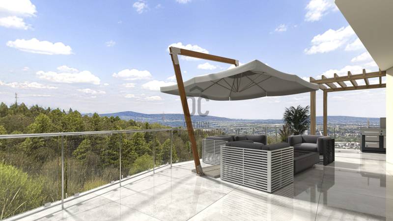 A 3D-s séta már megtekinthető!A Hármashatár-hegy lábánál, közvetlenül az erdő szomszédságában, a Natura 2000 természetvédelmi övezet mellett valósul meg Harsánylejtő legújabb 5 csillagos új építésű projektje.Itt a természet nem csak panoráma, hanem állandó szomszéd, a lakás tetőteraszáról gyakorlatilag megérinthetjük a fák lombkoronáját!Reggeli kávé madárcsicsergéssel.Friss erdei levegő az ablakon át.Egy hely, ahol a panoráma örök, a csend valódi, és az idő lelassul.Miért lesz egyedülálló ez a penthouselakás?- A PROJEKT EGYIK LEGJOBB ADOTTSÁGÚ, LEGINTIMEBB LAKÁSA- Az ingatlan nettó alapterülete 119,87 m² + 139,99 m² terasz, TOVÁBBÁ EGY KÖZEL 50 M²-ES TETŐTERASZ IS TARTOZIK AZ INGATLANHOZ.- A teraszról csigalépcső vezet a kb. 50 m²-es felső rooftop szintre, ahol adott esetben egy skybar és grill terasz is kialakítható. Mindezt pedig körbeöleli egy elképesztő erdei panoráma, a tetőtérre tervezett panorámaszaunából \"norvég panoráma\" fog nyílni ahonnan a fák lombján végigfutó utolsó napsugarait élvezhetjük.- Nappali + 3 hálószoba, melyhez két fürdőszoba, továbbá egy gardrób helyiség is tartozik. A masterbedroom kellően elszeparált a lakótértől, így a szülői intimtás megmarad.- A nappali-étkezőrész közel 35 m²- a műszaki tartalom budai viszonylatban is páratlan, a lakások közötti hanggátlófalak plusz hanggátlást kapnak, a friss levegő egyenesen az erdőből érkezik az ablakok nyitása nélkül és az okosotthonrendszerrel akár hangulatokat állíthatunk be otthonunkba-egy gombnyomás és minden megváltozik.- AZ INGATLANHOZ TARTOZIK 2 DB GARÁZSBEÁLLÓ, ILLETVE 1 DB FELSZÍNI BEÁLLÓ, TOVÁBBÁ 1 DB NAGY MÉRETŰ TÁROLÓ IS, AMELYEK EGYÜTTES ÁRA TOVÁBBI 50 MFT.A felső tetőszint szerkezetileg előkészített:- jacuzzi elhelyezésére- szauna kialakítására- kültéri konyhára/ skybárra- pergola telepítéséreMŰSZAKI TARTALOMItt nem a profit, hanem a minőség dominál!Bármely projekttel összehasonlítjuk, nem kérdés merre billen a mérleg!A műszaki tartalomból csak néhány pont:- Extra méretű, több ponton záródó, MABISZ minősítésű, hangszigetelt okos bejárati ajtó- Emelt szintű hanggátlás (előtétezett falazat, kőzetgyapot szigeteléssel)- Hővisszanyerős szellőztetőrendszer - Prémium alumínium nyílászárók RC2–RC3 biztonsági besorolással- Kiemelkedő akusztikai és hőtechnikai paraméterek- Átszellőztetett, modern homlokzati rendszerA kivitelezés célja nem a minimum szint elérése volt, hanem a hosszú távú értékállóság és a valódi komfort.LOKÁCIÓ ÉS MIKROKÖRNYEZETÉs mégis miért olyan különleges?Harsánylejtő Buda legkedveltebb villaparkos területe, széles utcák, újépítésű villák és modern épületek, illetve szemet gyönyörködtető zöld terület jellemzi. Itt még a fű is olyan zöld, mint Új-Zélandon!A zöldövezeti, kertvárosi milliő verhetetlen lokációval párosul, csendes, zöld környezet, egy ugrásra minden szolgáltatástól!Gépjárművel:Árpád-híd 10 percreBritsih School 8 percreA 2. kerület szintén 10 percreÉs néhány perc alatt elérhető a Gobuda Bevásárló Központ (mozi, Libri, cukrászdák, fodrászat, posta, bankfiók stb..), Lidl, Tesco, a Kolosy tér és minden szolgáltatás amit csak kívánni lehet!A környéket több buszjárat is kiszolgálja, így a város minden pontja könnyedén elérhető!A PROJEKTRŐLAz első ütemben 6 épület valósul meg, épületenként mindössze 5 lakással.Az alacsony lakásszám biztosítja az intimitást és a nyugodt lakókörnyezetet.VÁRHATÓ ÁTADÁS: 2027. novemberA természetvédelmi övezet közelsége, a panoráma és a privát tetőszint együtt olyan kombináció, amely a budai piacon korlátozott számban érhető el.Nálunk nem lakást vásárol, hanem életstílust, amelyet máshol nem kaphat meg!Várom megtisztelő hívását!